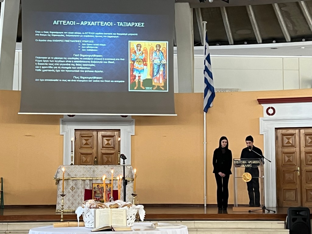 Την Τρίτη 8 Νοεμβρίου 2022 τα Αρσάκεια-Τοσίτσεια Γυμνάσια Εκάλης γιόρτασαν τη Σύναξη των Αρχαγγέλων Μιχαήλ και Γαβριήλ. Ο εορτασμός, ο οποίος έχει καθιερωθεί από τα Σχολεία μας, για να τιμηθούν οι μεγάλοι ευεργέτες τους, Απόστολος και Αναστασία Αρσάκη και Μιχαήλ και Ελένη Τοσίτσα, περιελάμβανε την τέλεση Αρτοκλασίας και Μνημόσυνο για τους ευεργέτες των Αρσακείων Σχολείων. Τις ακολουθίες τέλεσε ο αιδεσιμολογιότατος πρωτοπρεσβύτερος π. Ελισαίος Κυνούσης. Ακολούθησε ομιλία από δύο μαθητές του Β΄ Αρσακείου-Τοσιτσείου Λυκείου Εκάλης, υπό την καθοδήγηση της καθηγήτριάς τους κ. Αναστασίας Ανέστη, θεολόγου.  Στην ομιλία τους αναφέρθηκαν τόσο στην ορθόδοξη θεολογία και παράδοση σχετικά με τους Αγγέλους όσο και στην ιστορία των Αρσακείων και την προσφορά τους στην παιδεία και την εκπαίδευση, από την ίδρυσή τους (1836) μέχρι σήμερα.