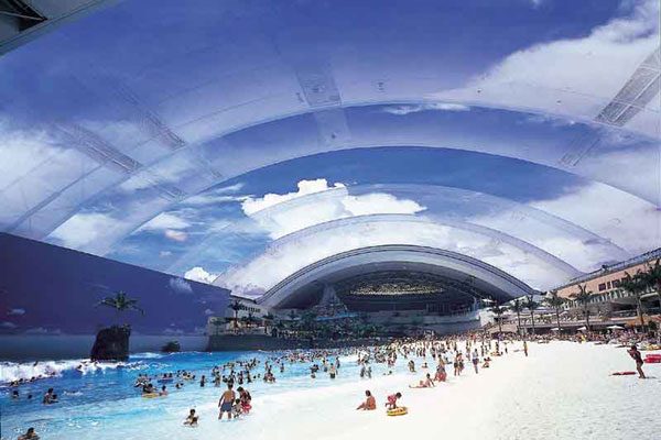 Οι τεχνητές εσωτερικές παραλίες κερδίζουν συνεχώς δημοτικότητα σε όλο τον κόσμο. Μπορούμε να τις συναντήσουμε στο Μονακό, το Χονγκ Κονγκ, το Παρίσι, το Βερολίνο, το Ρότερνταμ, το Τορόντο και σε άλλα μέρη, όμως η μεγαλύτερη και πιο δημοφιλής από αυτές είναι το Seagaia Ocean Dome στο Miyazaki της Ιαπωνίας. Το «Ocean Dome» αποτελεί θεαματικό μέρος του ξενοδοχειακού συγκροτήματος «Phoenix Seagaia Resort» και είναι στην ουσία μια τεράστια κλειστή παραλία με άμμο (είδος λεπτού άσπρου μαρμάρου) και θαλασσινό νερό, όπου οι λουόμενοι έχουν τη δυνατότητα να απολαύσουν το μπάνιο τους όλες τις εποχές του χρόνου! Ουσιαστικά, είναι η μεγαλύτερη εσωτερική παραλία στον κόσμο που περιέχει τεχνητή άμμο, φοίνικες κι έχει χωρητικότητα για περισσότερους από 10,000 τουρίστες. Η θερμοκρασία του νερού, που περιέχει την ιδανική ποσότητα αλατιού, η υγρασία και ο αέρας στον χώρο ελέγχονται από υψηλής τεχνολογίας μηχανήματα, ενώ ένα ειδικό σύστημα δημιουργεί ανά τακτά χρονικά διαστήματα μεγάλα κύματα για τους λάτρεις του σερφ. Επιπλέον, το κτήριο όπου «στεγάζεται» η παραλία έχει τη μεγαλύτερη αναδιπλούμενη οροφή στον κόσμο, παρέχοντας σε μόνιμη βάση έναν καταγάλανο ουρανό στους λουόμενους. Ο περιβάλλων χώρος έχει διαμορφωθεί ανάλογα, με βράχους και φοίνικες, έτσι ώστε να προσομοιάζει με κανονική εξωτερική παραλία, ενώ όλων των ειδών τα θαλασσινά σπορ είναι διαθέσιμα! Το μοναδικό πρόβλημα που υπάρχει είναι… πού θα βρεις χώρο για να απλώσεις την πετσέτα σου!