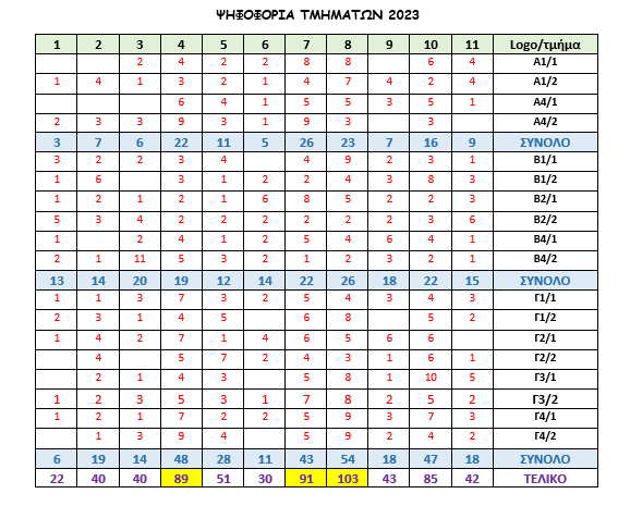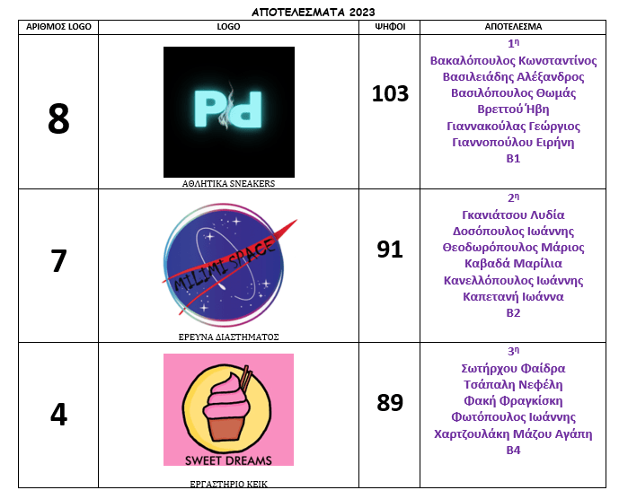 Σε δημοσκόπηση που έγινε, με τη συμμετοχή των μαθητών των τμημάτων Α1, Α4, Β1, Β2, Β4, Γ1, Γ2, Γ3 και Γ4 για το ποιο λογότυπο εταιρείας (κατά την άποψή τους) παρουσιάζει ενδιαφέρον και τους αρέσει περισσότερο, οι ομάδες που συγκέντρωσαν τις περισσότερες προτιμήσεις είναι: