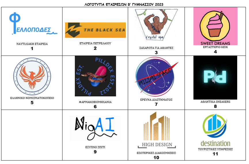 Οι μαθητές δημιούργησαν τις δικές τους εταιρείες, επέλεξαν τις επωνυμίες και επινόησαν τον λογότυπο τους.