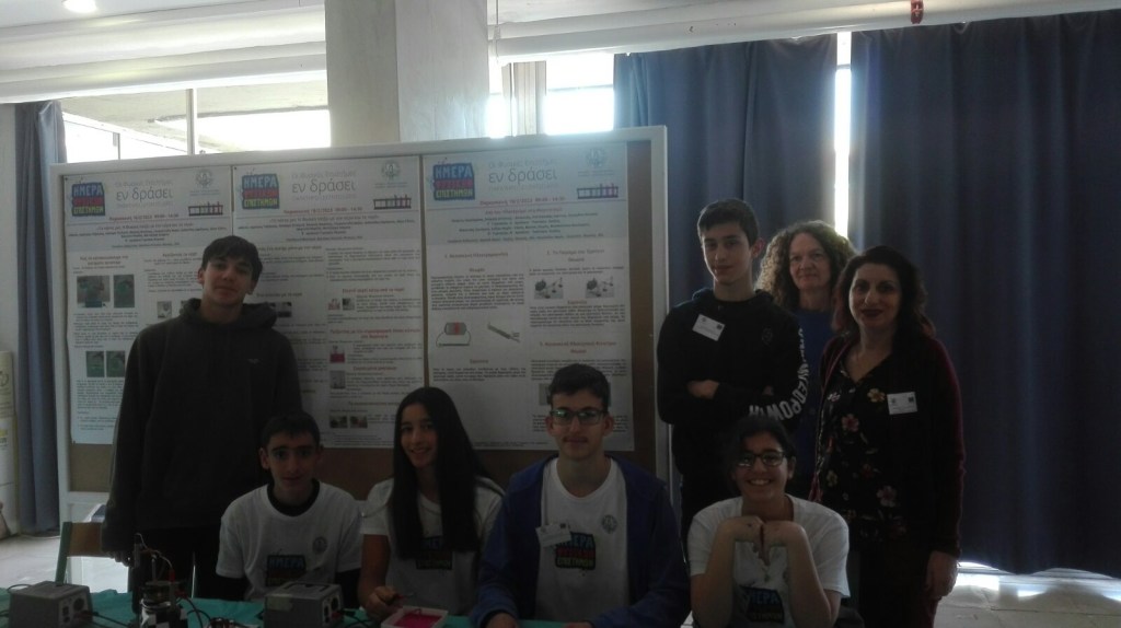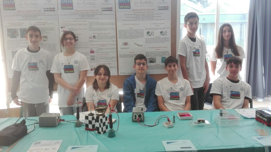 Την ίδια ημέρα οι μαθητές της Γ’ Γυμνασίου του Α΄ Αρσακείου Τοσιτσείου Γυμνασίου Εκάλης, Κούρτης Χαράλαμπος, Νιάρχος Αντώνιος, Ροντόπουλος Ιωάννης και Σγούρδου Ναταλία παρουσίασαν στους επισκέπτες μαθητές των Σχολείων μας πειράματα ηλεκτρομαγνητισμού υπό την καθοδήγηση της καθηγήτριας Φυσικής κ. Μ. Νικολαΐδου. Συγκεκριμένα, έμαθαν πώς από απλά υλικά μπορούν να φτιάξουν έναν ηλεκτρομαγνήτη και έναν ηλεκτρικό κινητήρα. Τέλος, παρακολούθησαν την απόκλιση της πυξίδας από έναν ρευματοφόρο αγωγό.