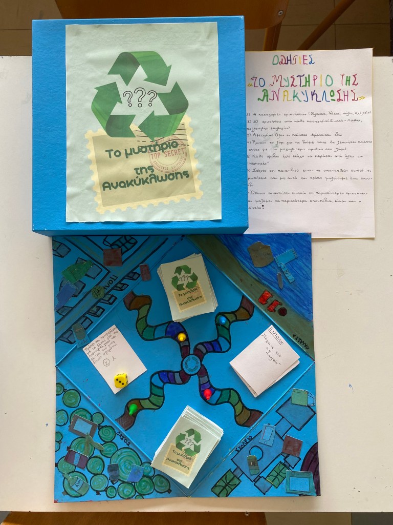 Τα τμήματα Α2 και Α4 του Α’ Αρσακείου – Τοσιτσείου Γυμνασίου Εκάλης, στο πλαίσιο του Εργαστηρίου Δεξιοτήτων του Α’ τετράμηνου, «Πλανήτης Γη, το κοινό μας σπίτι», έφτιαξαν, με την καθοδήγηση της καθηγήτριας Καλλιτεχνικών κ. Κυριακής Πρεβενιού, 4 επιτραπέζια παιχνίδια για το περιβάλλον, με στόχο την ευαισθητοποίηση, την ενημέρωση και την καλλιέργεια περιβαλλοντικής συνείδησης.