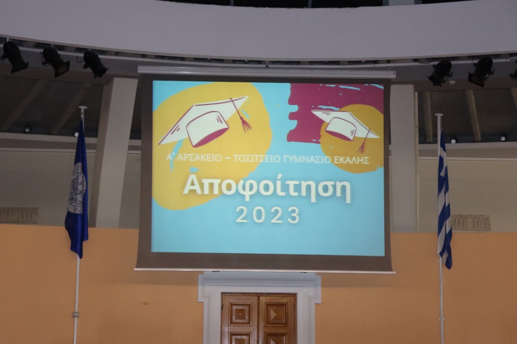 Την Τρίτη 27 Ιουνίου 2023 και ώρα 11 π.μ. στο θέατρο των Αρσακείων-Τοσιτσείων Σχολείων Εκάλης πραγματοποιήθηκε η τελετή αποφοίτησης των μαθητών της Γ΄ τάξης του  Α΄ Αρσακείου-Τοσιτσείου Γυμνασίου Εκάλης, παρουσία των εκπαιδευτικών και των γονέων τους. Την τελετή άνοιξε ο Διευθυντής του Σχολείου κ. Μιχαήλ Καπετανής, που μίλησε με θέρμη στους μαθητές, αναφερόμενος τόσο στην ολόπλευρη ανάπτυξη της προσωπικότητάς τους και στη διεύρυνση των γνώσεών του στο Γυμνάσιο, όσο και στη συμμετοχή και την ευαισθητοποίησή τους για ποικίλα θέματα, πάντοτε με τη συνδρομή των εκπαιδευτικών και των γονέων τους, που στέκονται πάντα δίπλα τους. Ακολούθησαν οι ομιλίες  του προέδρου του Συλλόγου Γονέων και Κηδεμόνων κ. Γεωργίου Δοβλέτη, καθώς και του εκπροσώπου του 15μελούς μαθητικού συμβουλίου κ. Αλέξη Λάτση.
