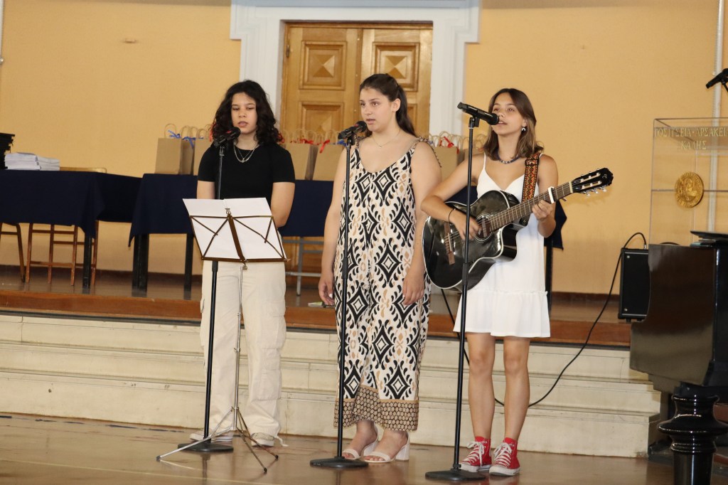 Ακολούθησαν ηλεκτρονικές προβολές μέσω των οποίων ξετυλίχθηκαν οι αναμνήσεις και οι δράσεις των μαθητών μας κατά τα γυμνασιακά τους χρόνια. Τραγούδια μαθητών μας έντυσαν μουσικά την τελετή, η οποία ολοκληρώθηκε με την απονομή των τίτλων σπουδών και αναμνηστικών δώρων από τον Σύλλογο Διδασκόντων του Σχολείου και από τον Σύλλογο Γονέων και Κηδεμόνων. Την εκδήλωση  επιμελήθηκε η φιλόλογος κ. Αικ. Κατσιάνου. Τη μουσική επιμέλεια είχε η καθηγήτρια Μουσικής κ. Μ. Τασσοπούλου, τις ηλεκτρονικές παρουσιάσεις και τα βίντεο ανέλαβαν αντίστοιχα οι καθηγήτριες Πληροφορικής κ. Αδαμαντία Ξηρίδου και κ. Ξένια Σιούτη, ενώ την πρόσκληση φιλοτέχνησε η καθηγήτρια Καλλιτεχνικών κ. Κυριακή Πρεβενιού