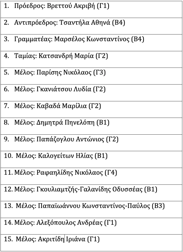 Έτσι, το 15μελές Μαθητικό Συμβούλιο συγκροτήθηκε σε σώμα και μετά από ψηφοφορία εξελέγησαν: