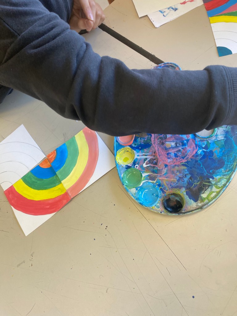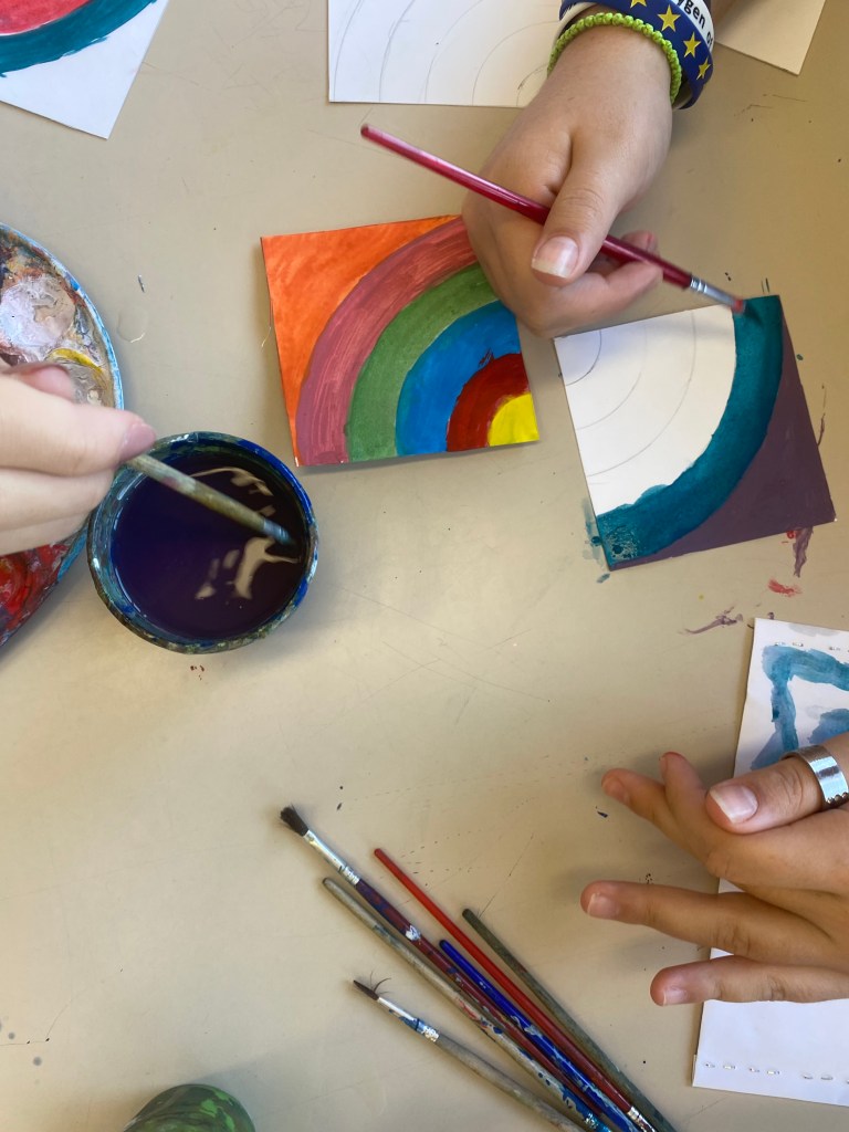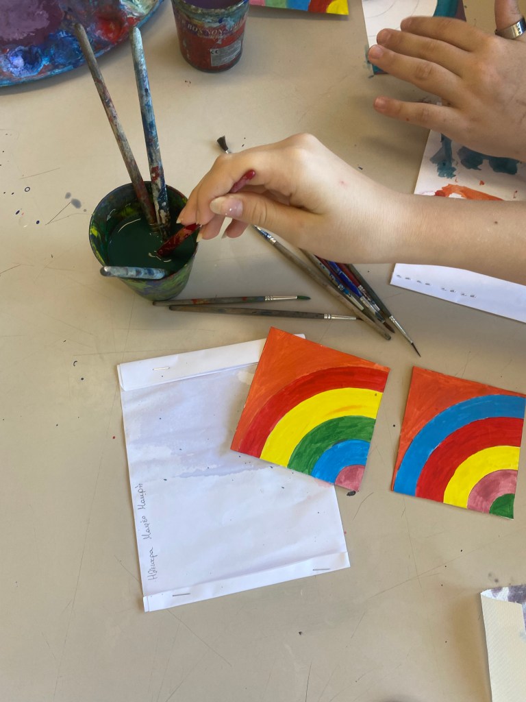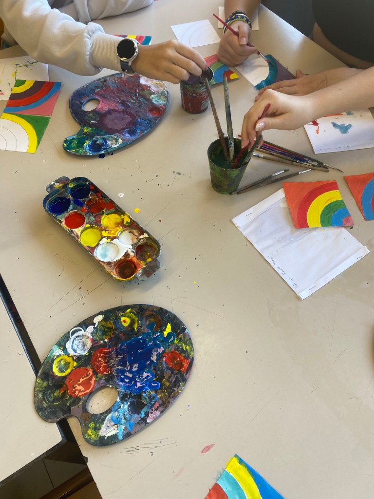 Οι μαθητές αφού παρακολούθησαν προβολή παρουσίασης αφιερωμένη στη ζωή και το έργο του μεγάλου εικαστικού, με την καθοδήγηση της καθηγήτριας Καλλιτεχνικών, ζωγράφισαν με ακρυλικά χρώματα 4 τετράγωνα με ομόκεντρους κύκλους 10*10 εκατοστά το κάθε ένα και τα χρωμάτισαν με συνδυασμούς της επιλογής τους. Στη συνέχεια συνθέσαμε εκ νέου όλα τα τετράγωνα σε επιφάνεια 60*80 εκατοστών και ολοκληρώθηκε το έργο.