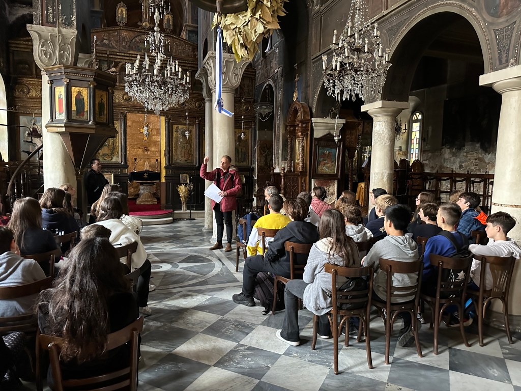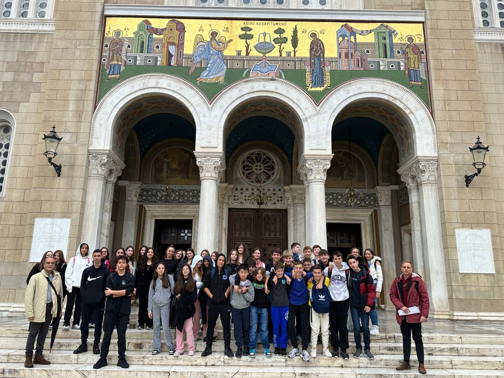 Οι μαθητές δύο τμημάτων της Β’ τάξης του Α’ Αρσακείου-Τοσιτσείου Γυμνασίου Εκάλης είχαν την ευκαιρία να επισκεφθούν και να ξεναγηθούν σε εμβληματικούς βυζαντινούς ναούς των Αθηνών και στη συνέχεια να συναντηθούν με τον Μακαριότατο Αρχιεπίσκοπο Αθηνών και πάσης Ελλάδος κ. Ιερώνυμο Β’ την Τετάρτη 22 Νοεμβρίου 2023.