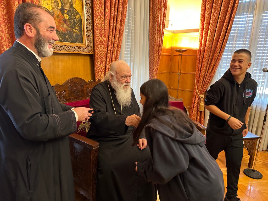 Ο Μακαριότατος καλωσόρισε τα παιδιά στον χώρο της Αρχιεπισκοπής Αθηνών, ενδιαφέρθηκε να μάθει τους προβληματισμούς τους και απάντησε σε ερωτήσεις που του έθεσαν.
