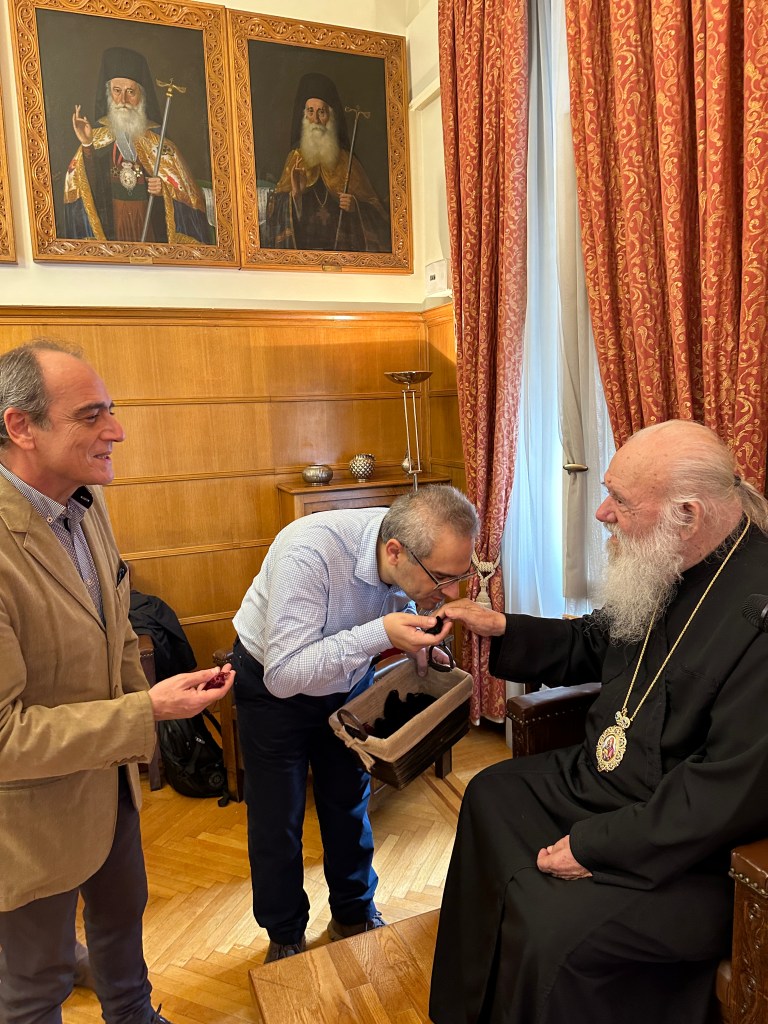 Στο τέλος της επίσκεψης οι μαθητές προσέφεραν στον Αρχιεπίσκοπο τον τόμο της Φιλεκπαιδευτικής Εταιρείας («Η αλματώδης ανάπτυξη των Αρσακείων-Τοσιτσείων Σχολείων κατά την τελευταία 35ετία, 1987-2022») και έναν Σταυρό ευλογίας που σχεδίασαν και εκτύπωσαν στον τρισδιάστατο εκτυπωτή (3D printer) των Εργαστηρίων των Αρσακείων -Τοσιτσείων Σχολείων. Ο Αρχιεπίσκοπος προσέφερε σε όλους, εκτός από το κέρασμα, ως ευλογία ένα σταυρουδάκι.