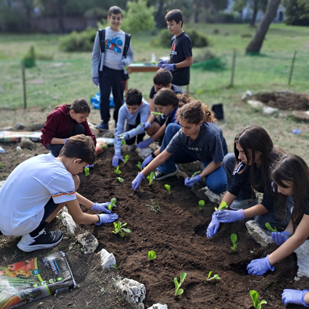 Οι μαθητές της Α’ τάξης του σχολείου μας, στα μέσα Οκτωβρίου, φύτεψαν εποχικά λαχανικά, μαρούλι, σέλινο, μαϊντανό, κρεμμύδι, με την επίβλεψη της κ. Λουκίας Σπυράτου, καθηγήτριας της Οικιακής Οικονομίας. Τα λαχανικά που παράγουν τα παιδιά είναι βιολογικά, καθώς δε γίνεται χρήση χημικών λιπασμάτων και εντομοκτόνων. Οι μαθητές μας θα προσφέρουν τα λαχανικά σε κοινωφελή ιδρύματα μέσω της ΜΚΟ «Μπορούμε», μια συνεργασία που ξεκίνησε το 2011 και συνεχίζεται μέχρι και σήμερα, στο πλαίσιο των προγραμμάτων εθελοντισμού και φιλανθρωπίας του σχολείου μας.