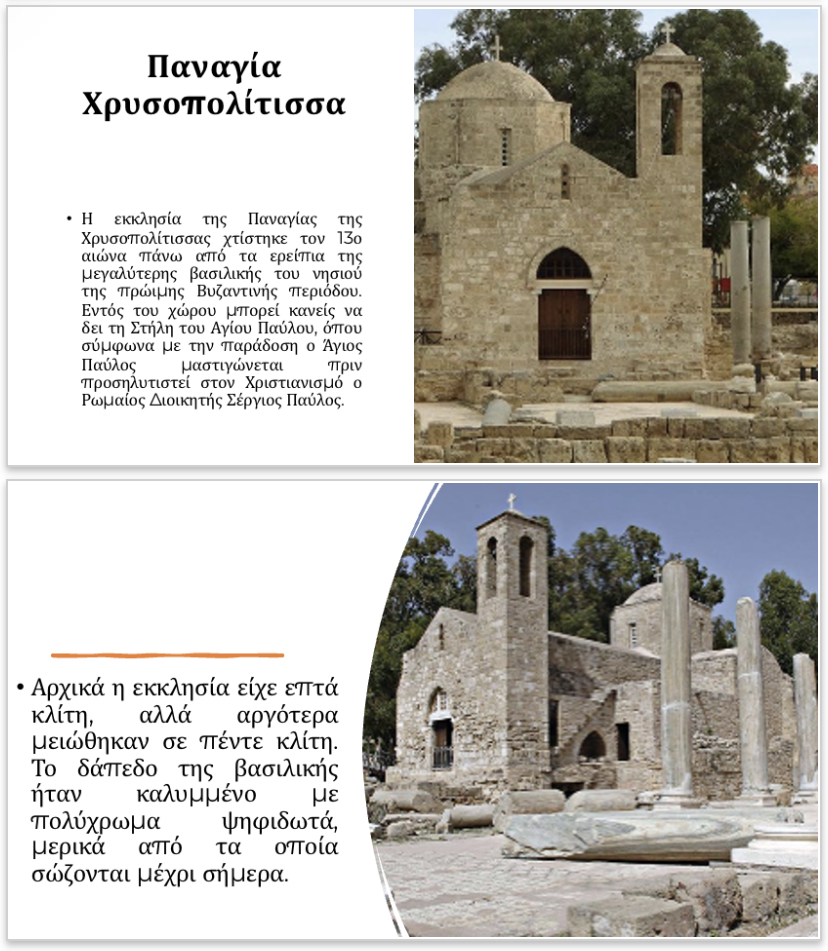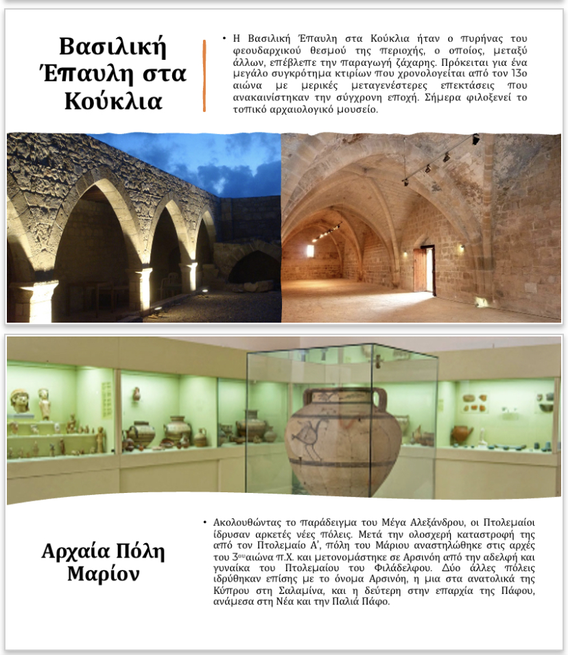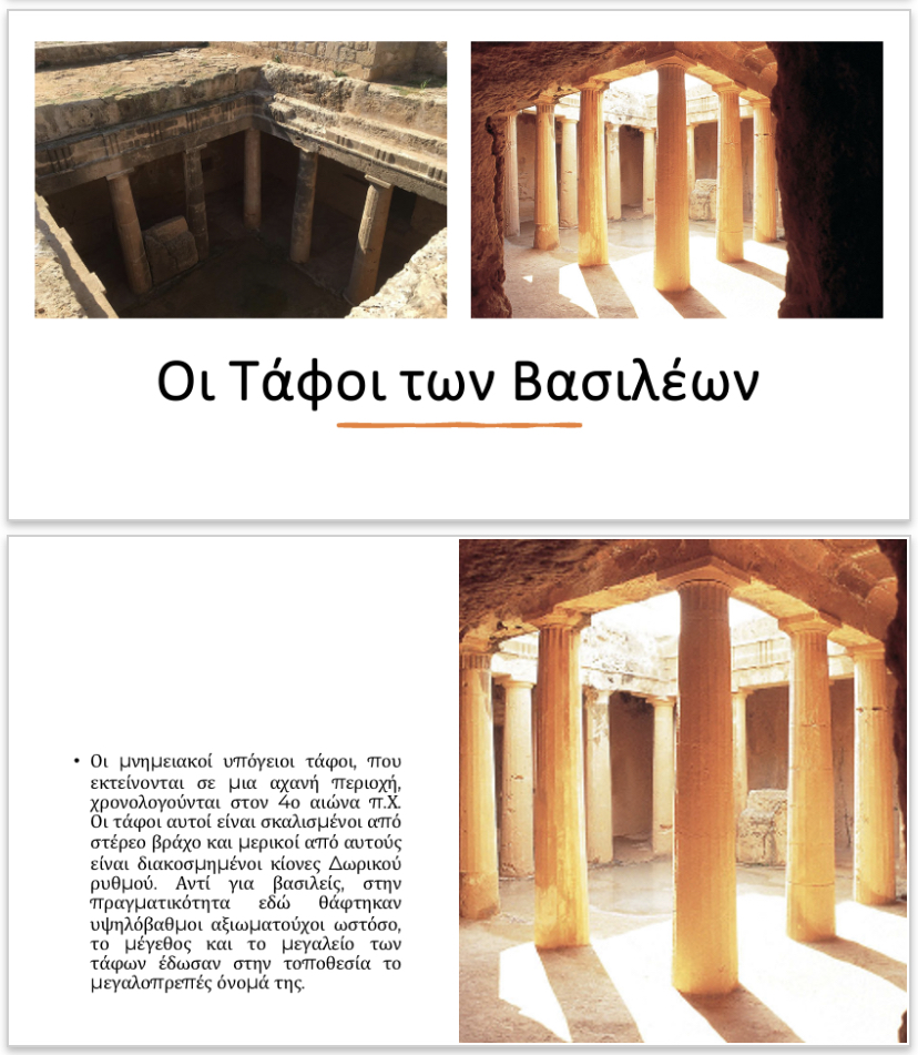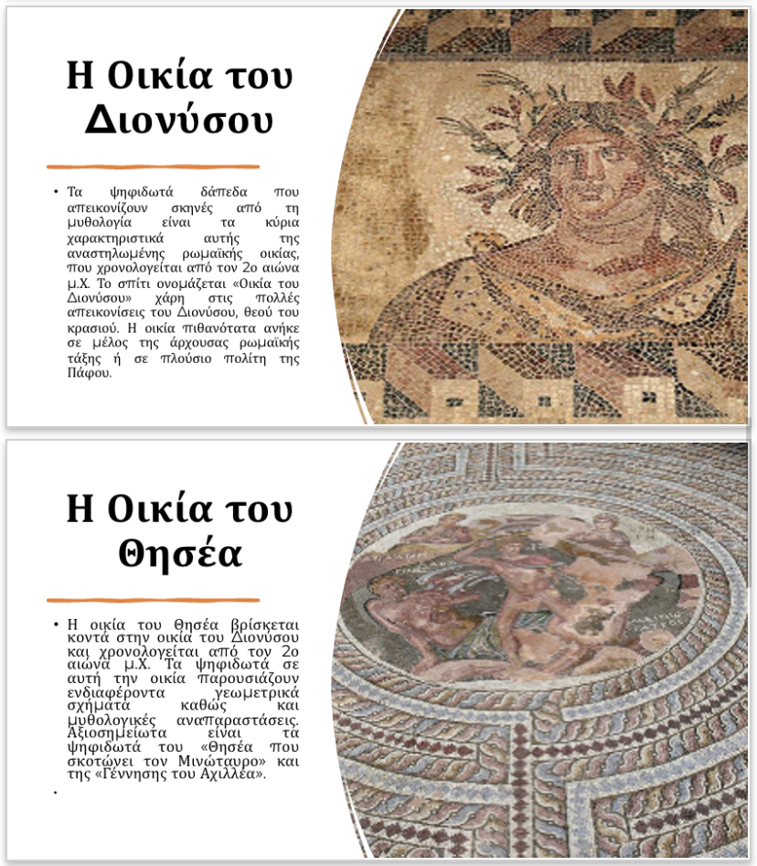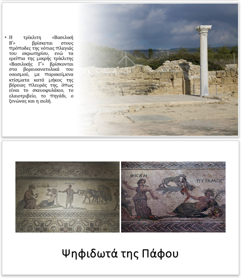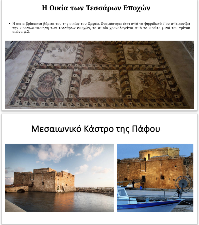 Με αφορμή αυτό το ψηφιδωτό του Ορφέα, οι μαθητές ανάρτησαν στον χώρο της τοιχογραφίας μια παρουσίαση των αρχαιολογικών θησαυρών της Πάφου. Φωτογραφίες από τα πολύτιμα αρχαιολογικά ευρήματα παρουσιάζονται μαζί με χρήσιμες πληροφορίες και μας ξεναγούν στην όμορφη Πάφο της Κύπρου.