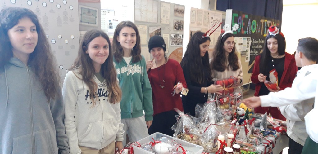 Οι μαθητές του Α΄Αρσακείου-Τοσιτσείου Γυμνασίου γέμισαν τους πάγκους τους με σπιτικές λιχουδιές, χριστουγεννιάτικα στολίδια, χειροποίητες κατασκευές, δημιουργώντας μια ζεστή εορταστική ατμόσφαιρα. Επίσης, το 15μελές Μαθητικό Συμβούλιο διοργάνωσε λαχειοφόρο αγορά, της οποίας η κλήρωση θα γίνει την Παρασκευή 22 Δεκεμβρίου 2023, κατά τη διάρκεια της χριστουγεννιάτικης εκδήλωσης του Σχολείου.