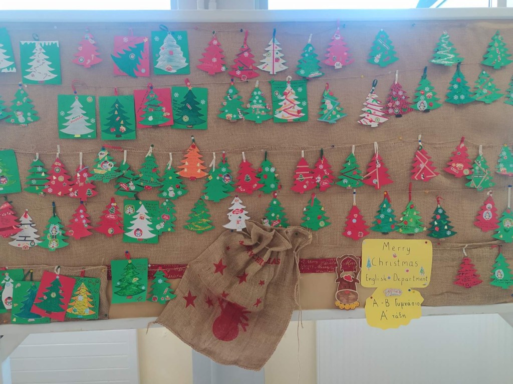 Στα τμήματα των Αγγλικών της Α’ και Β΄τάξης του Α΄Αρσακείου-Τοσιτσείου Γυμνασίου Εκάλης οι μαθητές/-τριες αντάλλαξαν ευχές, εν όψει των Χριστουγέννων, φτιάχνοντας χριστουγεννιάτικα δεντράκια. Οι δημιουργίες τους στολίζουν τα ταμπλό στους χώρους του σχολείου μας.