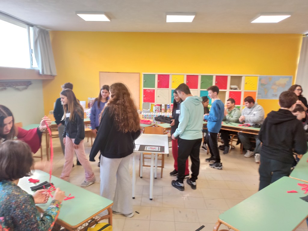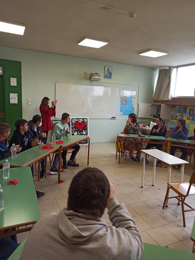 Οι επισκέπτες μας από το Σικιαρίδειο ξεναγήθηκαν στους χώρους του Σχολείου από τους μαθητές μας και στη συνέχεια όλοι μαζί παρέμειναν σε ειδικά διαμορφωμένη αίθουσα και συμμετείχαν σε ένα βιωματικό εργαστήριο με θέμα την Αγάπη. Με την καθοδήγηση της καθηγήτριας Καλλιτεχνικών κ. Κυριακής Πρεβενιού, τα παιδιά και των δύο Σχολείων δημιούργησαν ένα εικαστικό έργο αφιερωμένο στην αγάπη με αφορμή τον Αμερικανό καλλιτέχνη της Ποπ αρτ και ακτιβιστή Κιθ Χάρινγκ*, το έργο του οποίου περιέχει σημαντικά μηνύματα για την αγάπη, τις ανισότητες και τις διακρίσεις.