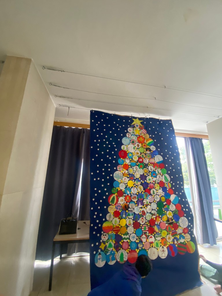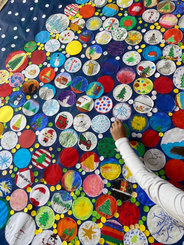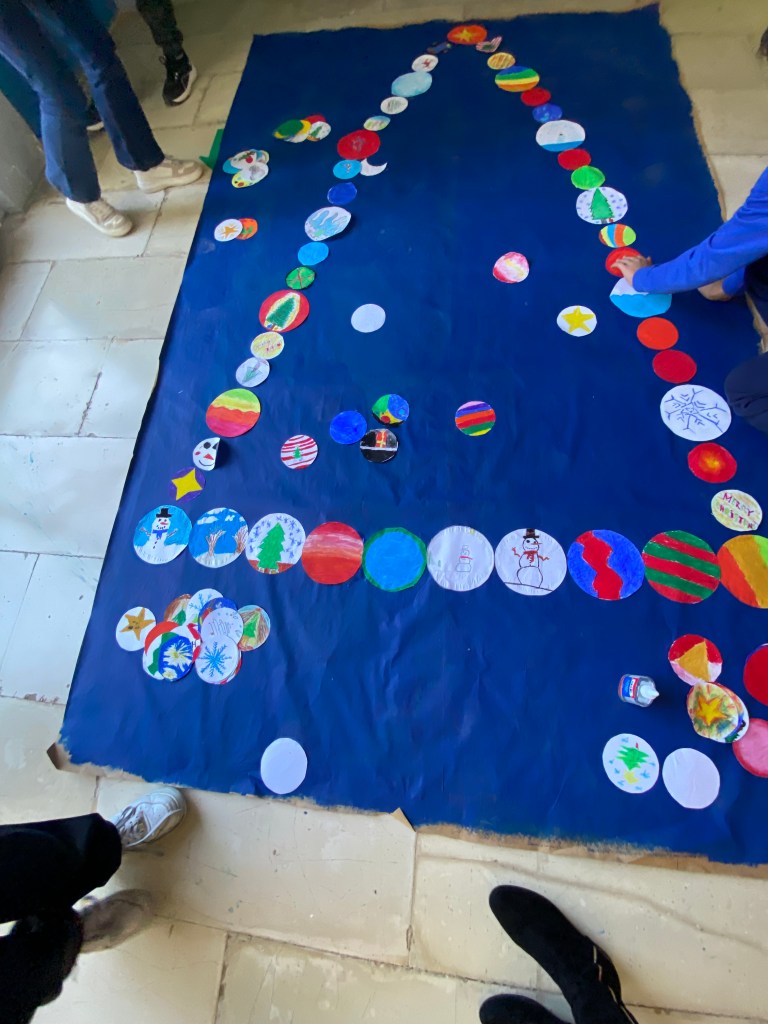 Όλα τα τμήματα του A’ Αρσακείου-Τοσιτσείου Γυμνασίου Εκάλης στο πλαίσιο του μαθήματος των Καλλιτεχνικών με την καθοδήγηση της καθηγήτριάς τους κ. Κυριακής Πρεβενιού, δημιούργησαν ένα εντυπωσιακό Χριστουγεννιάτικο δέντρο γεμάτο χρώματα! Πιο συγκεκριμένα, οι μαθητές ζωγράφισαν από ένα στολίδι του δέντρου με παστέλ σε σχήμα κύκλου. Τα στολίδια κολλήθηκαν από τους μαθητές σε σχήμα Χριστουγεννιάτικου δέντρου. Το έργο αναρτήθηκε και στολίζει πλέον τον χώρο του Θεάτρου των Αρσακείων-Τοσιτσείων Σχολείων. Συγχαρητήρια σε όλους τους μαθητές για τη συνεργασία και το εξαιρετικό αποτέλεσμα!