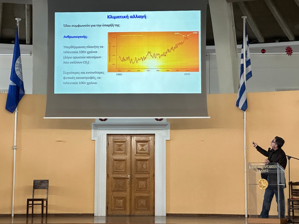 Την Τρίτη 5 Δεκεμβρίου 2023 οι μαθητές όλων των τάξεων του Α’ Αρσακείου-Τοσιτσείου Γυμνασίου Εκάλης παρακολούθησαν στον χώρο του Θεάτρου ομιλία από τον αναπληρωτή καθηγητή του τομέα Γεωτεχνικής της Σχολής Πολιτικών Μηχανικών του Εθνικού Μετσόβιου Πολυτεχνείου κ. Αχιλλέα Παπαδημητρίου, με θέμα τις φυσικές καταστροφές, τις αιτίες πρόκλησής τους και τους τρόπους αντιμετώπισής τους. Με αφορμή και τις πρόσφατες καταστροφές που υπέστη η χώρα μας από ακραία καιρικά φαινόμενα, μέσα από τη διαφωτιστική και ενδιαφέρουσα ομιλία, κατέστη εμφανές ότι η γνώση, η εκπαίδευση και η προετοιμασία είναι το μόνο μας όπλο απέναντι στις φυσικές καταστροφές. Την ομιλία διοργάνωσε η καθηγήτρια Φυσικής του Σχολείου μας κ. Ειρήνη Ερμοπούλου.