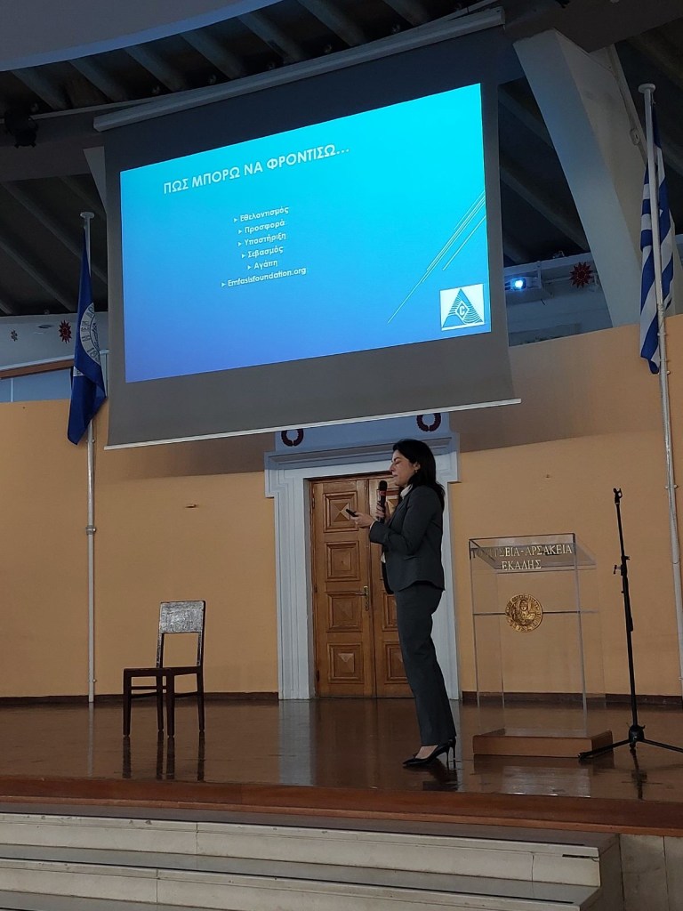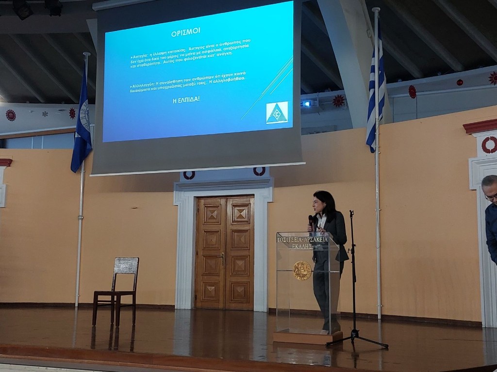 Την Παρασκευή 15 Δεκεμβρίου 2023, στο Θέατρο των Αρσακείων- Τοσιτσείων Σχολείων Εκάλης, όπου συγκεντρώνονται οι μαθητές όλων των τάξεων του Α’ Γυμνασίου για την καθιερωμένη πρωινή προσευχή, η Διεύθυνση του Σχολείου μας υποδέχτηκε την κ. Λουράντου, μητέρα μαθήτριάς μας, η οποία μίλησε στα παιδιά για το Emfasis Foundation. Πρόκειται για μία αστική μη κερδοσκοπική εταιρεία, που δραστηριοποιείται από το 2013 και στηρίζει άτομα που βιώνουν πολλαπλές μορφές αστεγίας, χρόνια ανέργους, οικογένειες σε ακραία φτώχεια, κοινωνικά ευάλωτους νέους, κοινωνικά αποκλεισμένους, μοναχικούς ηλικιωμένους σε κίνδυνο επικείμενης αστεγίας, σε επισφαλή στέγη ή σε κατάσταση δρόμου. Μέσα από μια πολύ ενδιαφέρουσα παρουσίαση, η κ. Λουράντου ενημέρωσε τους μαθητές για τα δεδομένα της αστεγίας στη χώρα μας και για τα αίτια αυτής. Κλείνοντας, τόνισε πως ο αριθμός των ωφελουμένων από τα προγράμματα ανακούφισης της οργάνωσης μπορεί να αυξηθεί μέσα από τον συνεπή και υπεύθυνο εθελοντισμό, που είναι ο ακρογωνιαίος λίθος του Emfasis Foundation. Άλλωστε, δεν υπάρχει μεγαλύτερη ηθική ικανοποίηση από το να προσφέρει κανείς σε έναν οργανισμό, που έχει ως πρωταρχικό σκοπό την ανάκτηση της ανθρώπινης αξιοπρέπειας!