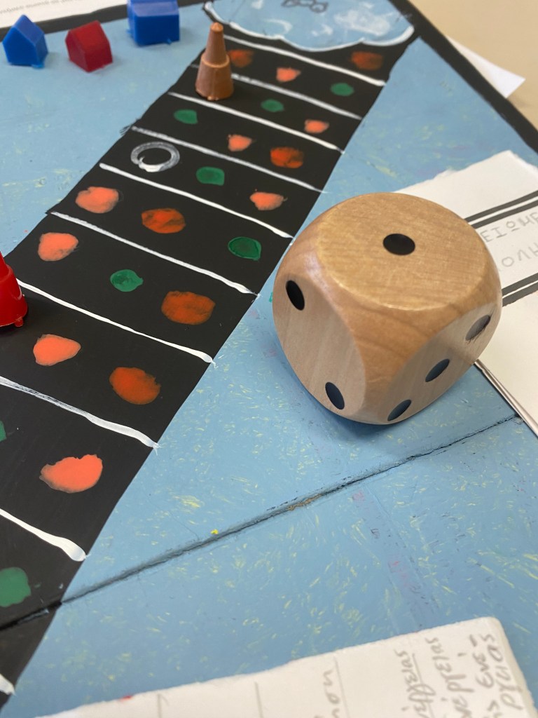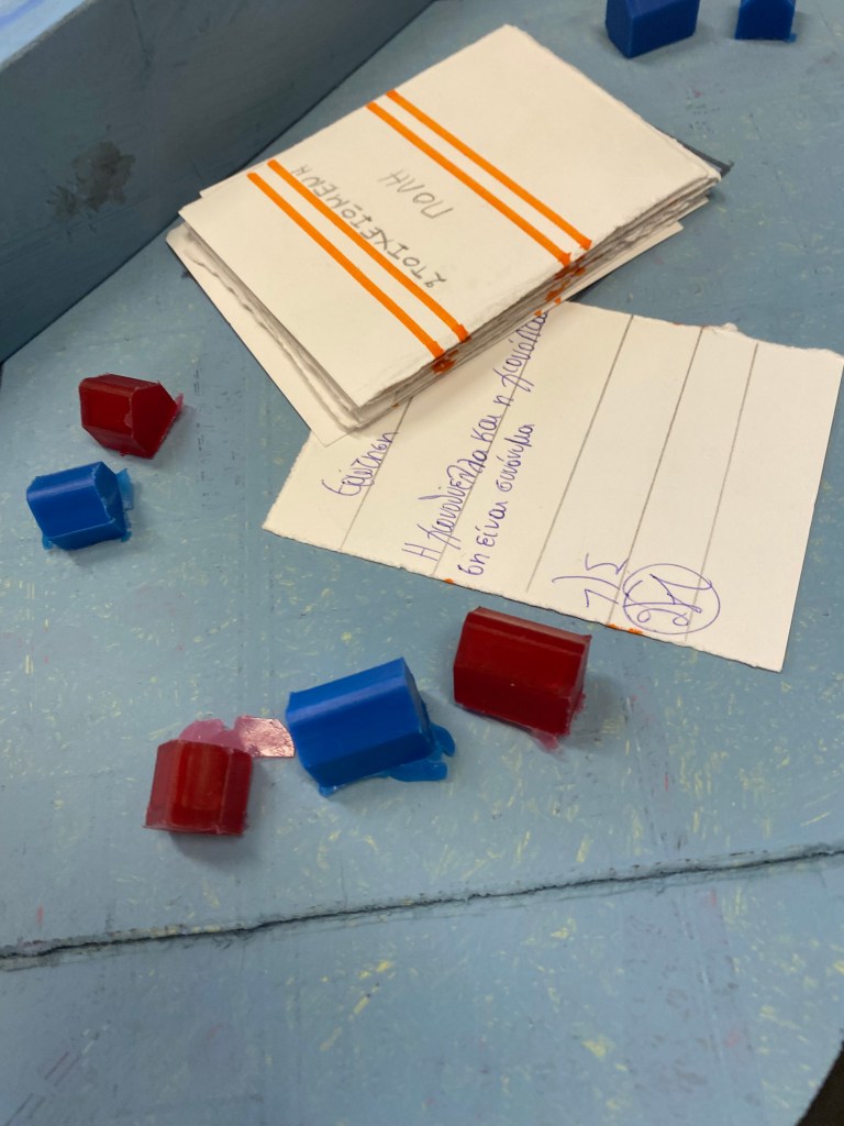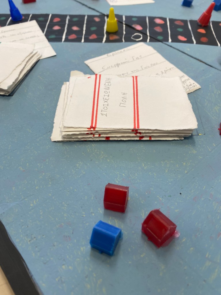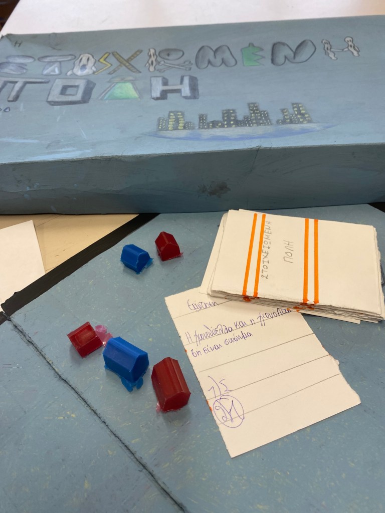 Μετά από ψηφοφορία, επιλέχθηκε προς υλοποίηση η ιδέα που έλαβε τις περισσότερες ψήφους. Τα παιδιά χωρίστηκαν σε ομάδες εργασίας και, με την καθοδήγηση της καθηγήτριάς τους, κατασκεύασαν το παιχνίδι στο Εργαστήριο Καλλιτεχνικών του Σχολείου.
