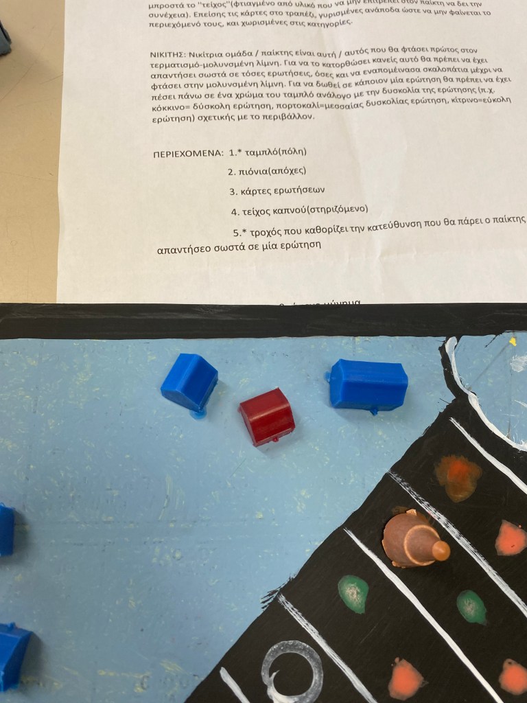Το δεύτερο μισό του τμήματος  Α2 του A΄ Αρσακείου – Τοσιτσείου Γυμνασίου Εκάλης, στο πλαίσιο του Εργαστηρίου Δεξιοτήτων του Α’ τετράμηνου, «Πλανήτης Γη, το κοινό μας σπίτι», έφτιαξαν, με την καθοδήγηση της καθηγήτριας Καλλιτεχνικών κ. Κυριακής Πρεβενιού, ένα επιτραπέζιο παιχνίδι για το περιβάλλον, με στόχο την ευαισθητοποίηση, την ενημέρωση και την καλλιέργεια περιβαλλοντικής συνείδησης.