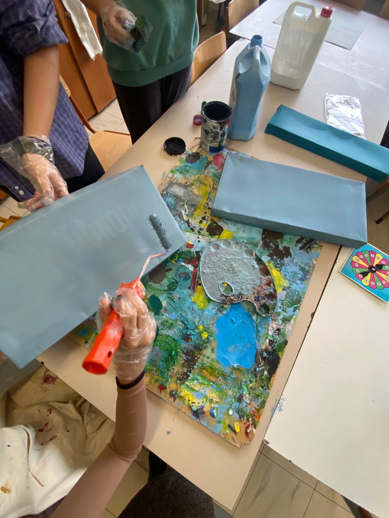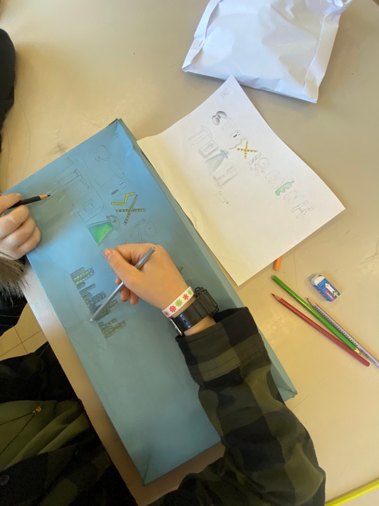 Οι εργασίες έγιναν ανά ομάδες στο εργαστήριο Καλλιτεχνικών του Σχολείου. Πιο συγκεκριμένα η ιδέα που ψηφίστηκε ήταν της Αναστασίας-Λιλάς Μαρινέλη .