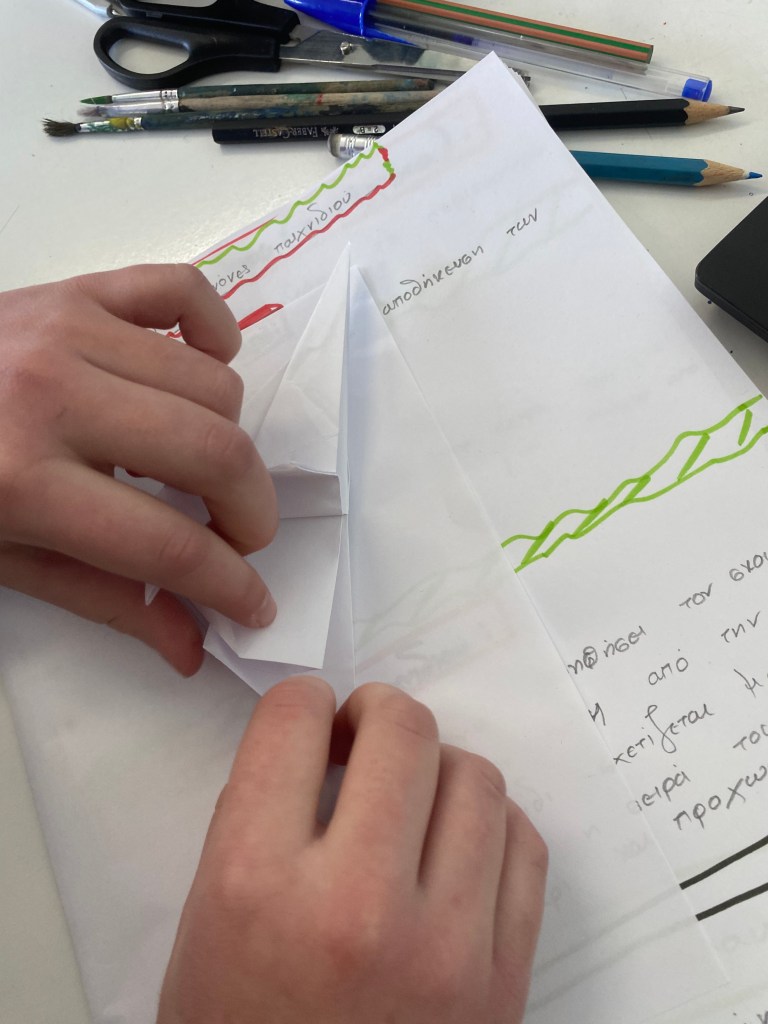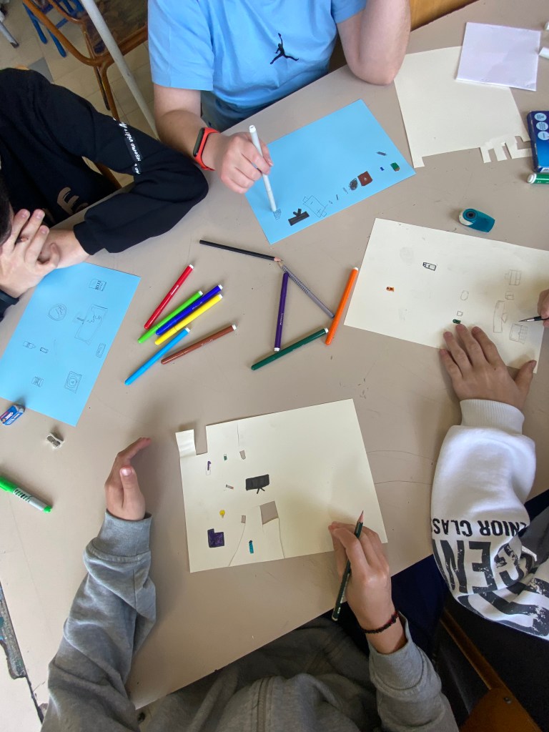 Οι εργασίες έγιναν ανά ομάδες στο εργαστήριο Καλλιτεχνικών του Σχολείου. Πιο συγκεκριμένα η ιδέα που ψηφίστηκε ήταν του μαθητή Ιωάννη Βασιλόπουλου