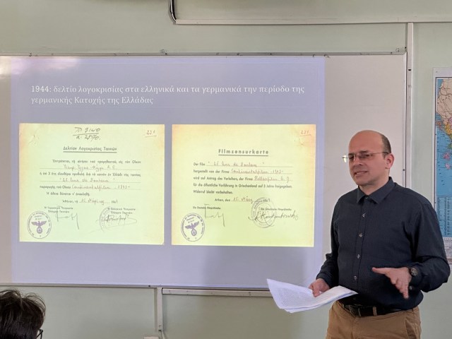 Την Πέμπτη 7 Μαρτίου 2024 τοΓ3τμήμα του Α’ Αρσακείου-Τοσιτσείου Γυμνασίου Εκάλης παρακολούθησε το εκπαιδευτικό πρόγραμμα της Κεντρικής Υπηρεσίας Γενικών Αρχείων του Κράτους, με τίτλο: «Η λογοκρισία στον κινηματογράφο, το θέατρο και το τραγούδι την περίοδο της δικτατορίας των συνταγματαρχών (1967-1974) μέσα από τεκμήρια των Γενικών Αρχείων του Κράτους». Εισηγητής ήταν ο κ. Γ. Γκλαβίνας, διδάκτωρ Νεότερης και Σύγχρονης Ιστορίας του Τμήματος Ιστορίας και Αρχαιολογίας του Αριστοτέλειου Πανεπιστήμιου Θεσσαλονίκης.