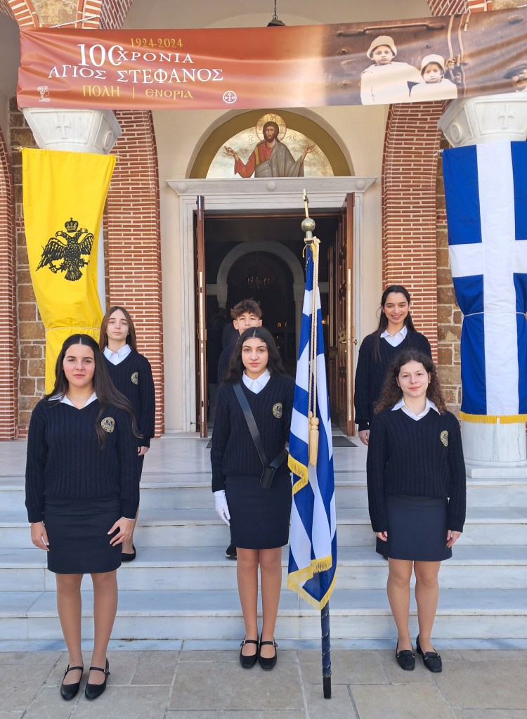 Τη Δευτέρα 25 Μαρτίου 2024 το Α’ Αρσάκειο-Τοσίτσειο Γυμνάσιο Εκάλης συμμετείχε στις εορταστικές εκδηλώσεις που διοργάνωσε ο Δήμος Διονύσου τιμώντας την εθνική επέτειο της 25ης Μαρτίου 1821 και τον Ευαγγελισμό της Θεοτόκου. Συγκεκριμένα, οι μαθητές μας παρευρέθηκαν στη Δοξολογία στον Iερό Nαό Κοιμήσεως Θεοτόκου Αγίου Στεφάνου. Ακολούθησαν η επιμνημόσυνη δέηση στο Μνημείο Πεσόντων, η εκφώνηση του πανηγυρικού της ημέρας από τη Δήμαρχο Διονύσου και η κατάθεση στεφάνων από επισήμους, κοινωνικούς και πολιτικούς φορείς, συλλόγους και μαθητές. Τέλος, οι μαθητές παρήλασαν στην κεντρική οδό του Αγίου Στεφάνου (οδός Ηρώων Πολυτεχνείου) και καταχειροκροτήθηκαν από όλους όσοι παρευρέθηκαν. Τους μαθητές μας προετοίμασαν και συνοδεύσαν οι καθηγητές Φυσικής Αγωγής κ. Η. Πάζα και κ. Λ. Παπαναστασίου.