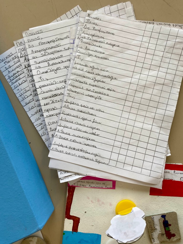 Το δεύτερο μισό του τμήματος Α3 του Α’ Αρσακείου–Τοσιτσείου Γυμνασίου Εκάλης, στο πλαίσιο του Εργαστηρίου Δεξιοτήτων του Α’ τετράμηνου, «Πλανήτης Γη, το κοινό μας σπίτι», έφτιαξαν, με την καθοδήγηση της καθηγήτριας Καλλιτεχνικών κ. Κυριακής Πρεβενιού, ένα επιτραπέζιο παιχνίδι για το περιβάλλον, με στόχο την ευαισθητοποίηση, την ενημέρωση και την καλλιέργεια περιβαλλοντικής συνείδησης. Αρχικά διαβάστηκαν και συζητήθηκαν οι προτάσεις όλων των παιδιών για ένα επιτραπέζιο παιχνίδι. Τα θέματα που αναλύθηκαν ήταν: