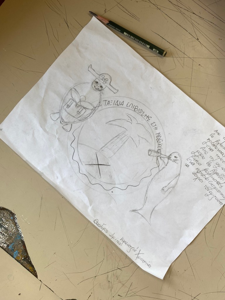 Οι εργασίες έγιναν ανά ομάδες στο εργαστήριο Καλλιτεχνικών του Σχολείου. Πιο συγκεκριμένα, η ιδέα που ψηφίστηκε ήταν της μαθήτριας Ειρήνης Γρηγοριάδου.