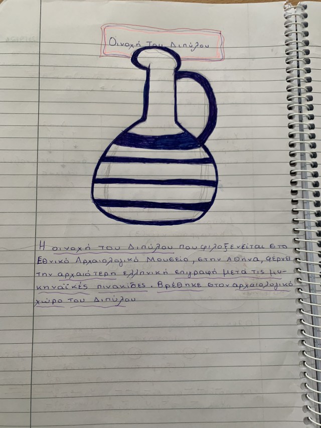 Στο πλαίσιο του μαθήματος της Αρχαίας Ελληνικής Γλώσσας της Α’ Γυμνασίου οι μαθητές είχαν από την αρχή την ευκαιρία να ανακαλύψουν πολλές από τις πτυχές του αρχαιοελληνικού πολιτισμού δίνοντας ιδιαίτερη έμφαση στην γλώσσα: την προέλευση του ελληνικού αλφαβήτου, τον τονισμό των λέξεων, τους τρόπους γραφής και τα πρώτα δείγματα ελληνικής γραφής. Κάνοντας ένα ταξίδι πίσω στο χρόνο οι μαθητές παρατήρησαν την ιδιαίτερη κινητικότητα των αρχαίων Ελλήνων και πιο συγκεκριμένα, ήδη από τον 9ο αιώνα π.Χ., των Ευβοέων, οι οποίοι κινούνταν προς τα δυτικά σε αναζήτηση μετάλλων. Μάλιστα, σε ένα μικρό νησί στην Τυρρηνική Θάλασσα, που στην αρχαιότητα λεγόταν Πιθηκούσες και σήμερα Ischia, βρέθηκαν μερικές από τις πρωιμότερες ελληνικές επιγραφές μαζί με φοινικικές. Οι Έλληνες όμως μετακινούνταν συστηματικά και προς τα ανατολικά ερχόμενοι σε επαφή με τους Φοίνικες και δημιουργώντας εμπορικούς σταθμούς στα παράλια της Συρίας (Αλ Μίνα). Μέσα σε ένα τέτοιο πλέγμα επαφών και σχέσεων τοποθετείται και ο δανεισμός του φοινικικού αλφαβήτου από τους Έλληνες.