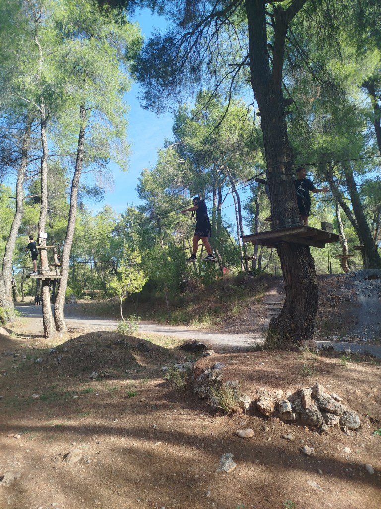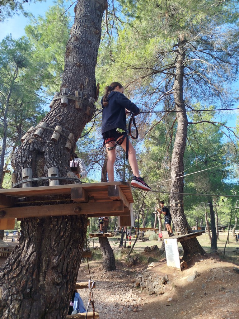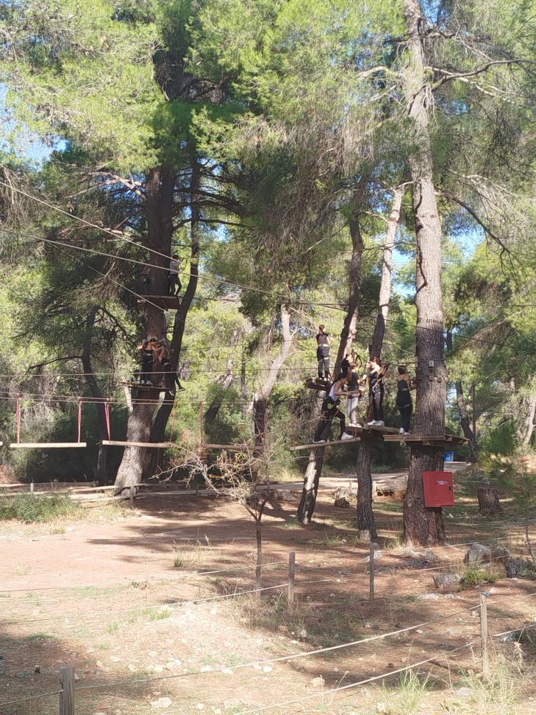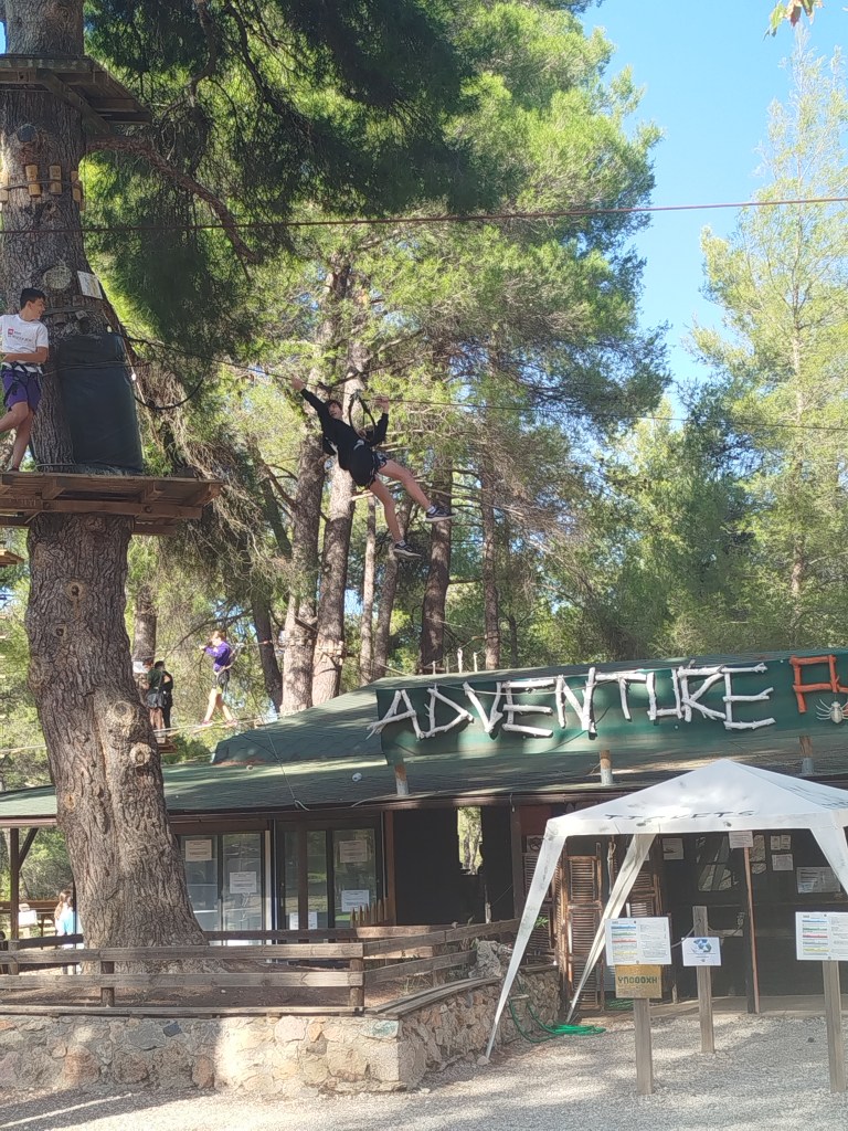 Στο πλαίσιο της Πανελλήνιας Ημέρας Σχολικού Αθλητισμού, την Τρίτη 15 Οκτωβρίου 2024 οι μαθητές όλων των τάξεων του Α’ Αρσακείου-Τοσιτσείου Γυμνασίου Εκάλης μετέβησαν στο Adventure Park στη Μαλακάσα, σε έναν χώρο αναψυχής, όπου διοργανώνονται δραστηριότητες, που έχουν σχέση με τη φύση. Το πάρκο δραστηριοτήτων απλώνεται σε μια τεράστια έκταση και φιλοξενεί πλήθος παιχνιδιών. Ειδικά οι εναέριες διαδρομές είναι πολύ δημοφιλείς! Τα παιδιά κατάφεραν να «πετάξουν» από δένδρο σε δένδρο, να κάνουν αναρρίχηση και zip line σε σχοινιά με τη χρήση ειδικού εξοπλισμού, επιλέγοντας διαδρομές με κλιμακούμενο βαθμό δυσκολίας σε διάφορα ύψη και ακολουθώντας πάντα τον κανονισμό ασφαλείας και λειτουργίας, καθώς και τις οδηγίες που δίνει το προσωπικό κατά την υποχρεωτική εκπαίδευση. Έτσι, με σύμμαχο τον καλό καιρό, συνδύασαν την ψυχαγωγία με την επιστροφή στη φύση!