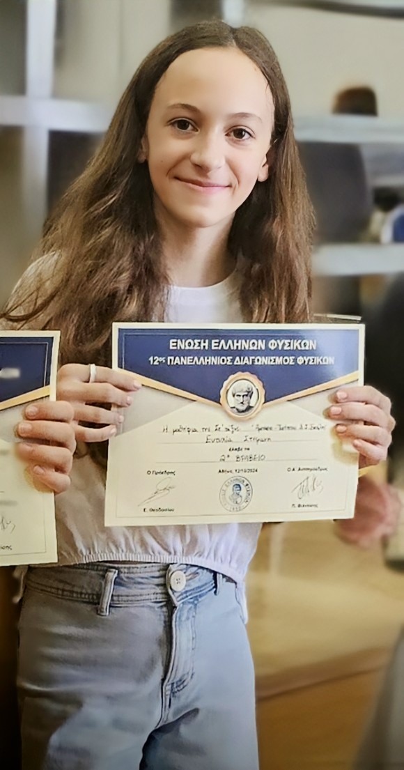 Μαθητές της Στ΄ τάξης τού Α΄ Αρσακείου-Τοσιτσείου Δημοτικού Εκάλης, που σήμερα φοιτούν στο Σχολείο μας διακρίθηκαν στη β’ φάση του 12ου Πανελλήνιου Διαγωνισμού Φυσικών Δημοτικού έτους 2024, που διεξήχθη από την Ένωση Ελλήνων Φυσικών.