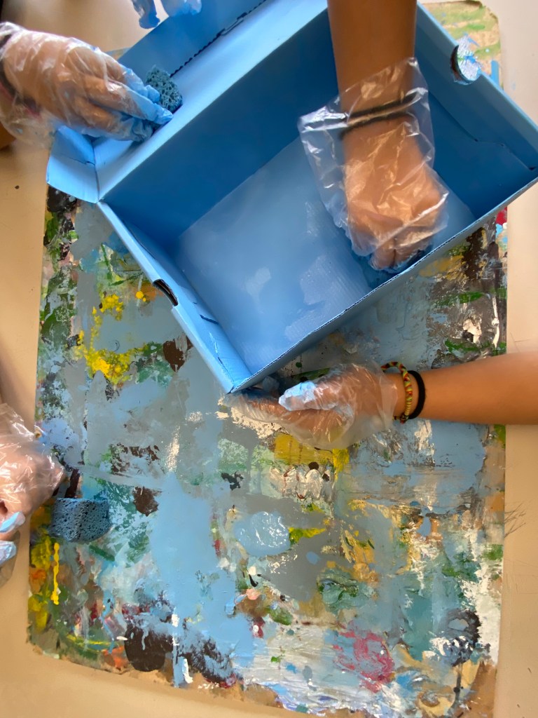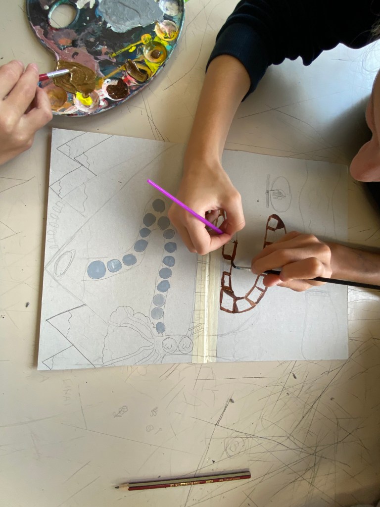 Οι εργασίες έγιναν ανά ομάδες στο εργαστήριο Καλλιτεχνικών του Σχολείου. Πιο συγκεκριμένα η ιδέα που ψηφίστηκε ήταν του μαθητή Πέτρου Μπαλαμπάνη.
