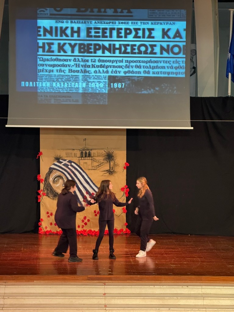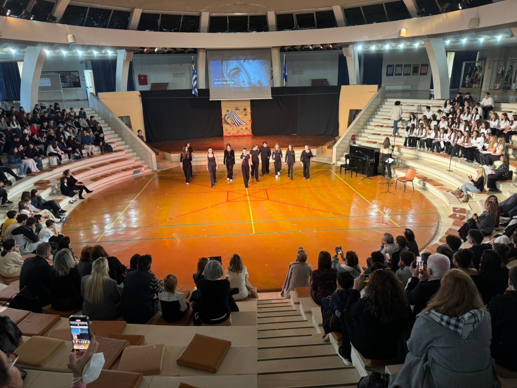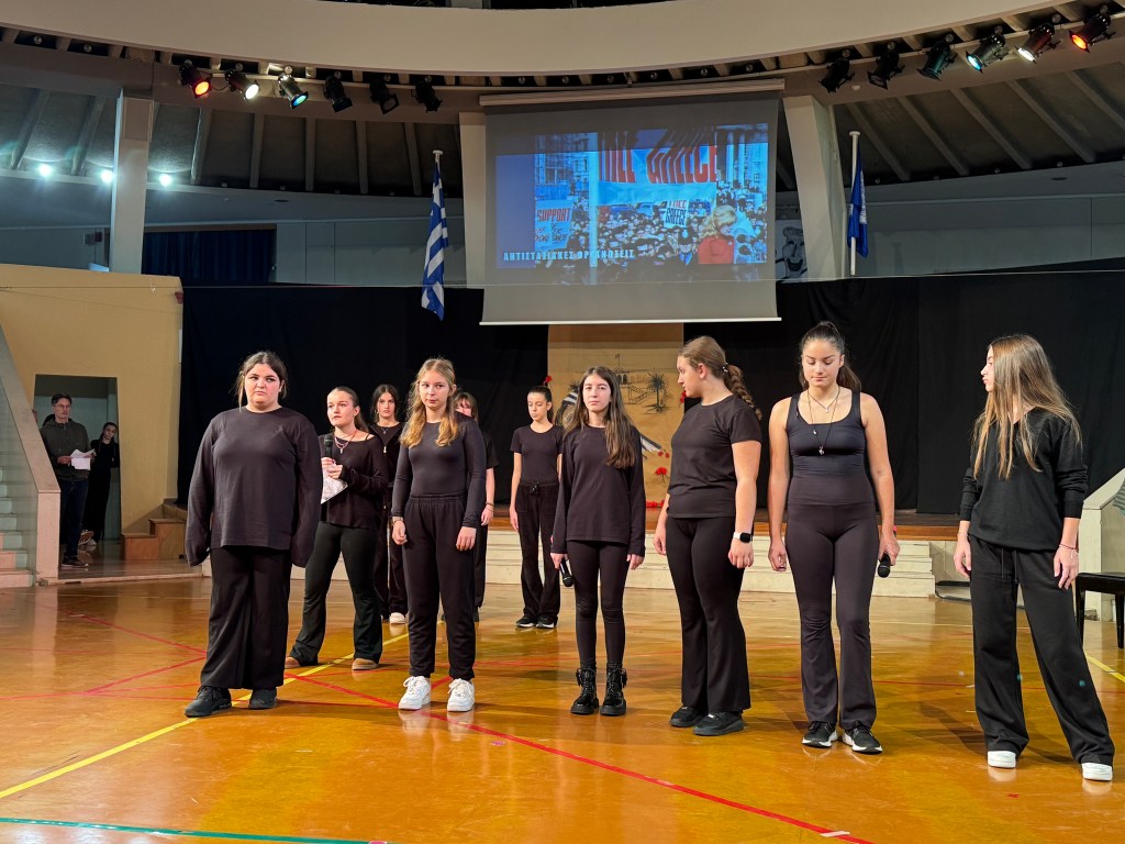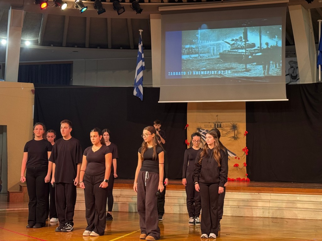 Την Παρασκευή 15 Νοεμβρίου 2024 οι μαθητές των Α’ και Β’ Αρσακείων-Τοσιτσείων Γυμνασίων Εκάλης παρακολούθησαν τον εορτασμό για την επέτειο της εξέγερσης των φοιτητών του Πολυτεχνείου το 1973. Μαθητές και των δύο Γυμνασίων παρουσίασαν το χρονικό των ημερών μέσα από λογοτεχνικά κείμενα της περιόδου, η χορωδία πλαισίωσε τη θεατρική ομάδα με τραγούδια σημαντικών μουσικοσυνθετών της εποχής, ενώ το οπτικοακουστικό υλικό ανέδειξε την ένταση των ημερών και την κρισιμότητα των γεγονότων. Μέσω της βιωματικής αυτής προσέγγισης θυμηθήκαμε, προβληματιστήκαμε, συγκινηθήκαμε, εμπνευστήκαμε! Άλλωστε, 51 χρόνια μετά, τα συνθήματα και οι διεκδικήσεις του τότε βρίσκονται σε αντιστοιχία με τις αγωνίες και τις απαιτήσεις του σήμερα.