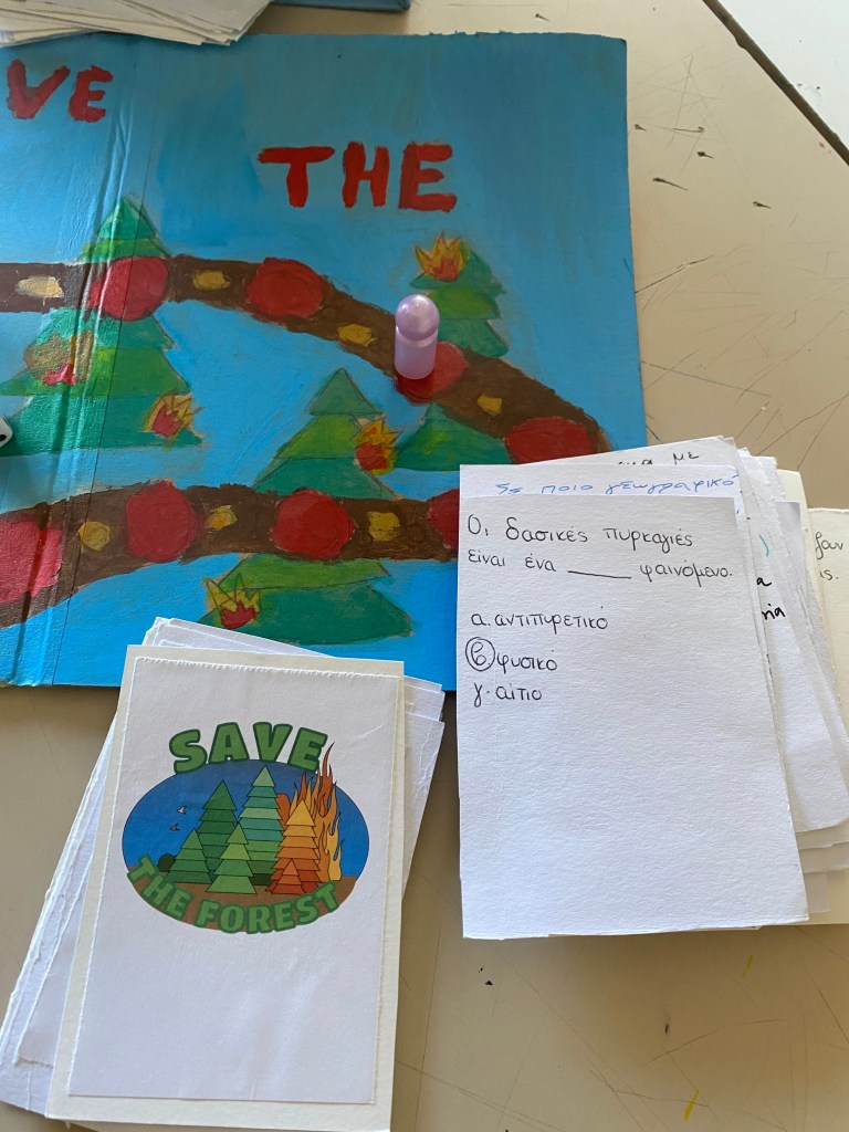 Το πρώτο μισό του τμήματος Α2 έφτιαξε το παιχνίδι «Save the Forest» ένα παιχνίδι για την περιβαλλοντική ευαισθητοποίηση και την προστασία των δασών από τις καταστροφικές πυρκαγιές. Πρόκειται ένα πρωτότυπο παιχνίδι και στόχο έχει η ομάδα που θα απαντήσει σωστά στις διαβαθμισμένης δυσκολίας ερωτήσεις περιβαλλοντικού ενδιαφέροντος και προστασίας του περιβάλλοντος από τα επικίνδυνα καιρικά φαινόμενα θα είναι και η νικήτρια!