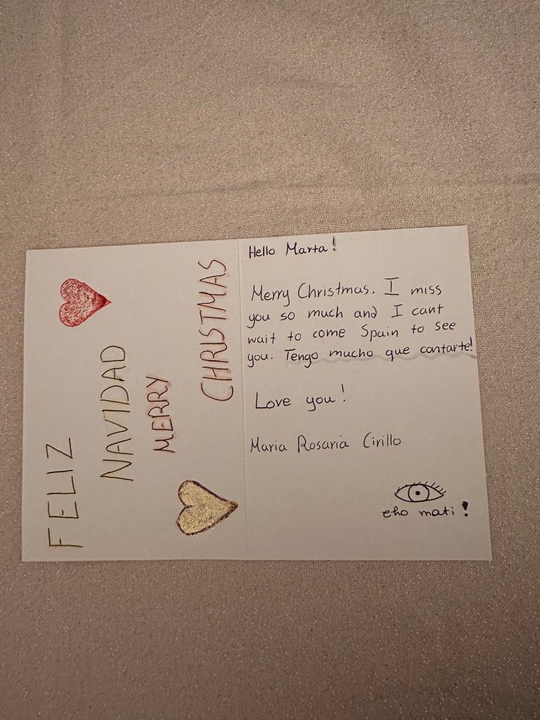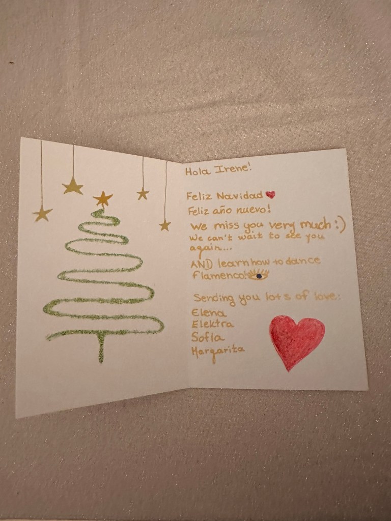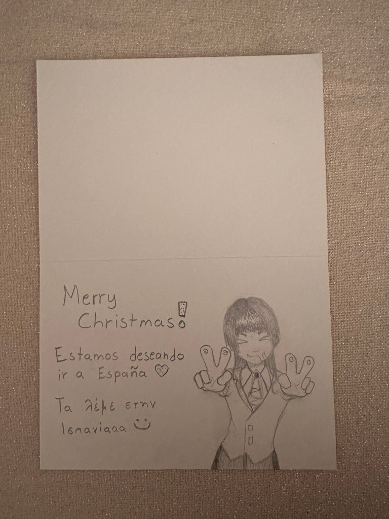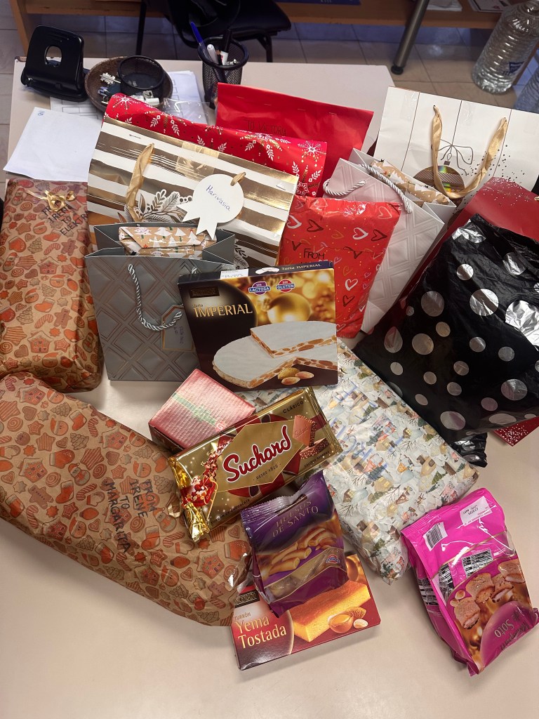Αυτά τα Χριστούγεννα, το πρόγραμμα Erasmus+ έδωσε μια ιδιαίτερη νότα χαράς στη σχολική μας κοινότητα. Οι μαθητές μας δημιούργησαν χριστουγεννιάτικες κάρτες, με ευχές για τους Ισπανούς συνομηλίκους τους. Κάθε κάρτα ήταν μοναδική, αντικατοπτρίζοντας τη δημιουργικότητα των μαθητών μας. Παράλληλα οι μαθητές μας δημιούργησαν μια παρουσίαση σχετικά με βασικές ελληνικές χριστουγεννιάτικες παραδόσεις, την οποία μοιράστηκαν με τους Ισπανούς φίλους τους. Σε αντάλλαγμα, οι Ισπανοί μαθητές μας εξέπληξαν στέλνοντας δώρα, γεμίζοντας τα πρόσωπα όλων μας με χαμόγελα. Όμως οι εκπλήξεις δεν σταμάτησαν εκεί… Μας έστειλαν επίσης νόστιμες ισπανικές λιχουδιές για όλο το Σχολείο! Αυτή η δραστηριότητα ήταν κάτι παραπάνω από μια ανταλλαγή καρτών και δώρων, ήταν ένας εορτασμός ενότητας, φιλίας και του αληθινού πνεύματος των γιορτών.