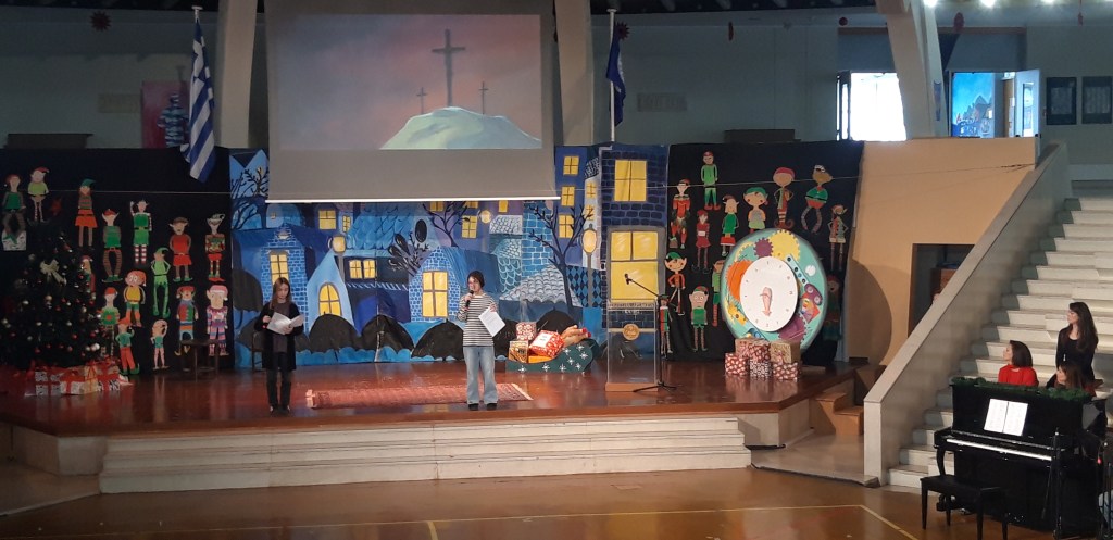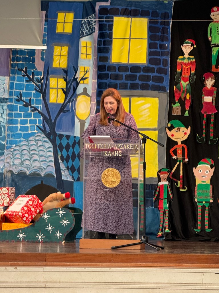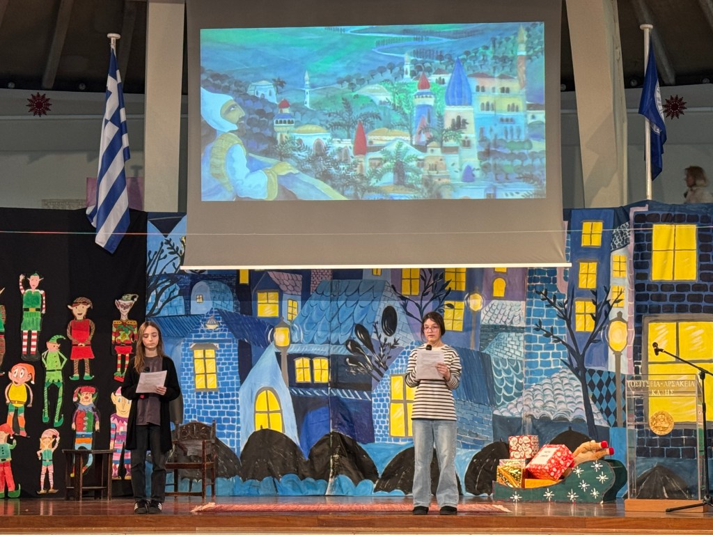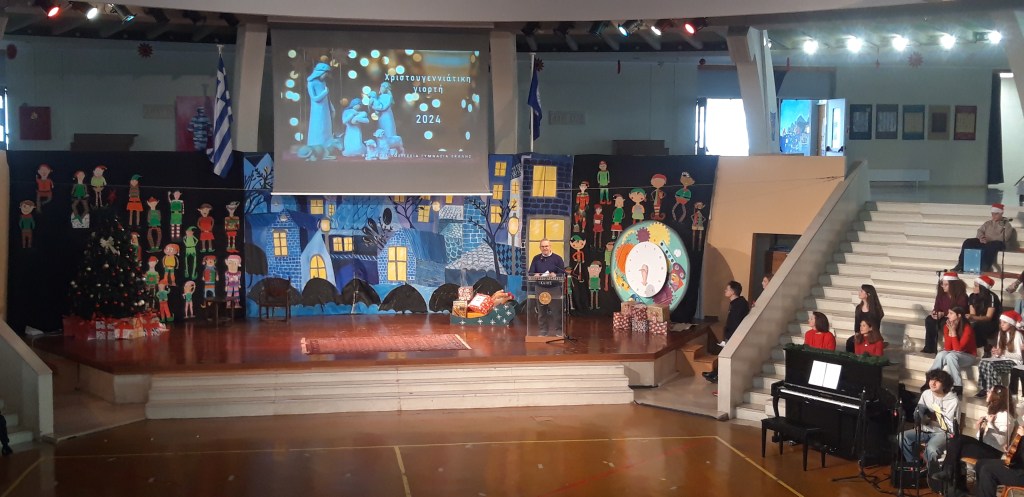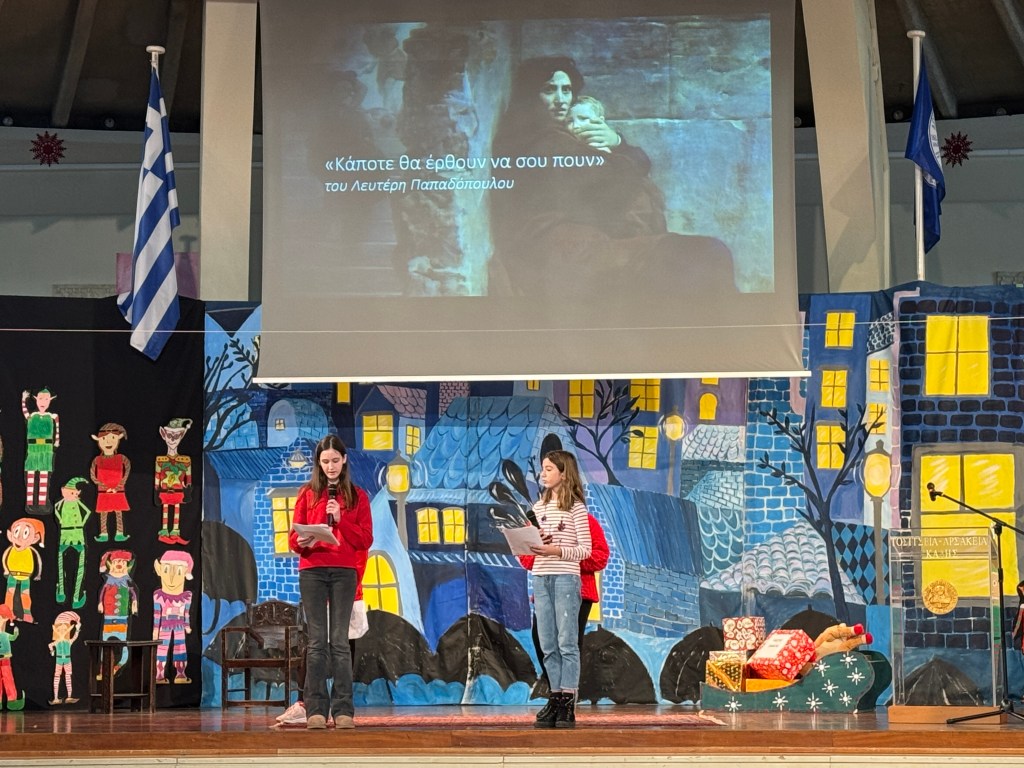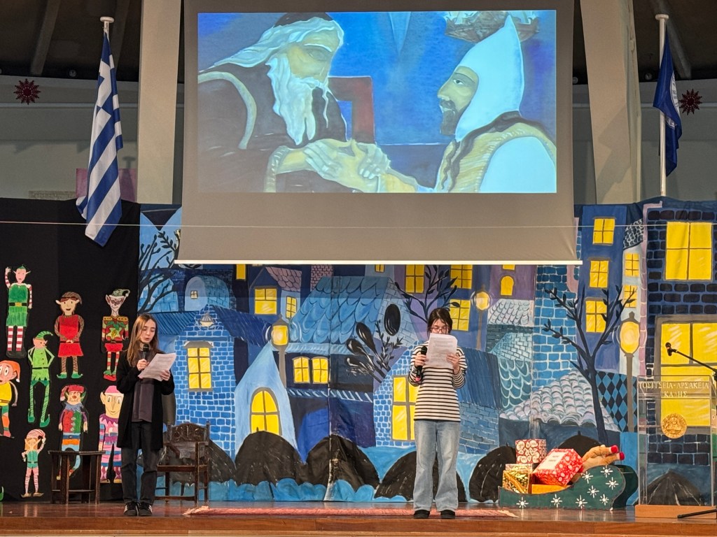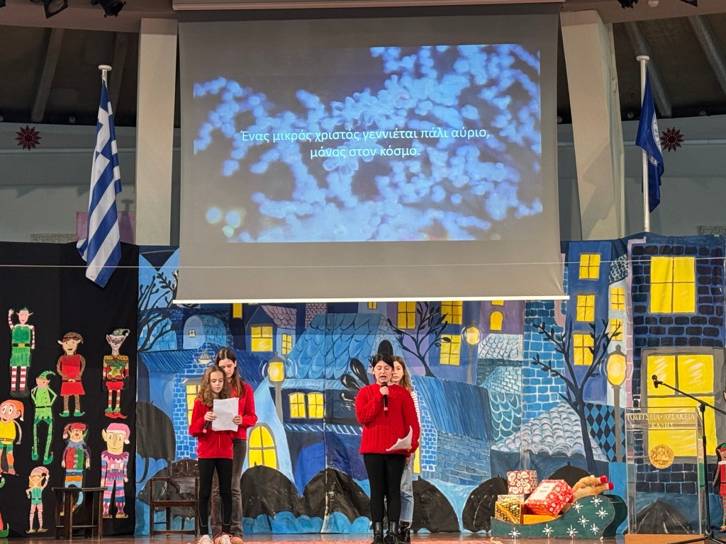 Τη Δευτέρα 23 Δεκεμβρίου 2024, στο θέατρο των Αρσακείων – Τοσιτσείων Σχολείων Εκάλης, μαθητές και εκπαιδευτικοί του Α’ και Β’ Αρσακείου–Τοσιτσείου Γυμνασίου Εκάλης συμμετείχαν στη Χριστουγεννιάτικη γιορτή των Σχολείων μέσα σε μια ζεστή και εορταστική ατμόσφαιρα! Η γιορτή ξεκίνησε με ομιλία της θεολόγου καθηγήτριας κ. Μαρίας Χαλκιά με θέμα «Τα Χριστούγεννα σήμερα». Στη συνέχεια μαθήτριες της Γ’ τάξης του Α’ Αρσακείου–Τοσιτσείου Γυμνασίου Εκάλης παρουσίασαν το βιβλίο «Το μεγαλύτερο δώρο: Η ιστορία του τέταρτου Μάγου». Ακολούθησαν μαθητές της Α’ τάξης του Β’ Αρσακείου–Τοσιτσείου Γυμνασίου Εκάλης με απαγγελίες Χριστουγεννιάτικων ποιημάτων. Η γιορτή πλαισιώθηκε από Χριστουγεννιάτικα τραγούδια της χορωδίας με την καθοδήγηση των μουσικών κ. Φ. Αβρανά, κ. Κ. Λασκαρίδου και κ. Χρ. Τέλι. Την επιμέλεια του οπτικοακουστικού υλικού της γιορτής είχε αναλάβει ο θεολόγος καθηγητής κ. Λ. Ιατρόπουλος. Στο τέλος όλοι ευχήθηκαν καλά Χριστούγεννα και ευτυχισμένο το νέο έτος 2025, με υγεία, ειρήνη και δημιουργικότητα!