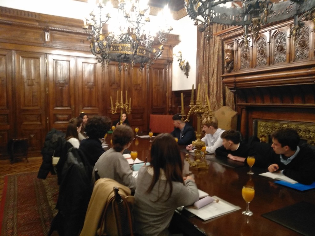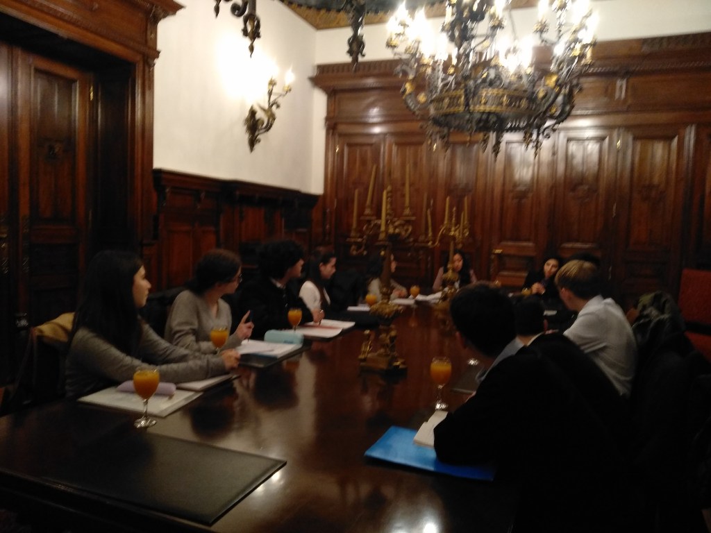 Οι μαθητές και οι μαθήτριες που εκπροσωπούν την Αίγυπτο στο συγκεκριμένο Συνέδριο παρακολούθησαν με μεγάλο ενδιαφέρον την ενημέρωση. Η κ. Yara Nawar, Γραμματέας Β’, και η κ. Mai Mohamed, Γραμματέας Β’, επίσης, υποδέχθηκαν την ομάδα εγκάρδια και παρουσίασαν τη στρατηγική της χώρας τους στο περιβαλλοντικό, πολιτικό και ανθρωπιστικό πεδίο καθώς και τις πρωτοβουλίες τις οποίες η Αίγυπτος έχει αναλάβει με στόχο την εξάλειψη των προβλημάτων παγκοσμίως, όπως τον ρόλο του διαμεσολαβητή στο θέμα των διαπραγματεύσεων για το φλέγον θέμα του πολέμου στη Μέση Ανατολή. Στη συνέχεια, ακολούθησε συζήτηση και τέθησαν οι ερωτήσεις των μαθητών, οι οποίες απαντήθηκαν με εξαιρετική σαφήνεια! Ο ίδιος ο Πρέσβυς, κ. Omar Amer Youssef, απηύθυνε χαιρετισμό στην ομάδα των μαθητών/τριών και μίλησε στους μαθητές–delegates για τη χώρα του, δίνοντας στοιχεία σχετικά με το σύγχρονο προφίλ της Αιγύπτου καθώς και για το καταπληκτικό οίκημα που στεγάζει την Πρεσβεία τους, το οποίο υπήρξε το πρώτο έργο του αρχιτέκτονα Ερνέστου Τσίλλερ στην Αθήνα! Πλήρως ενημερωμένη και με τις καλύτερες εντυπώσεις η ομάδα ευχαρίστησε τους Διπλωμάτες και εκείνοι με τη σειρά τους ευχήθηκαν κάθε επιτυχία στην εκπροσώπηση της Αιγύπτου στο Συνέδριο!