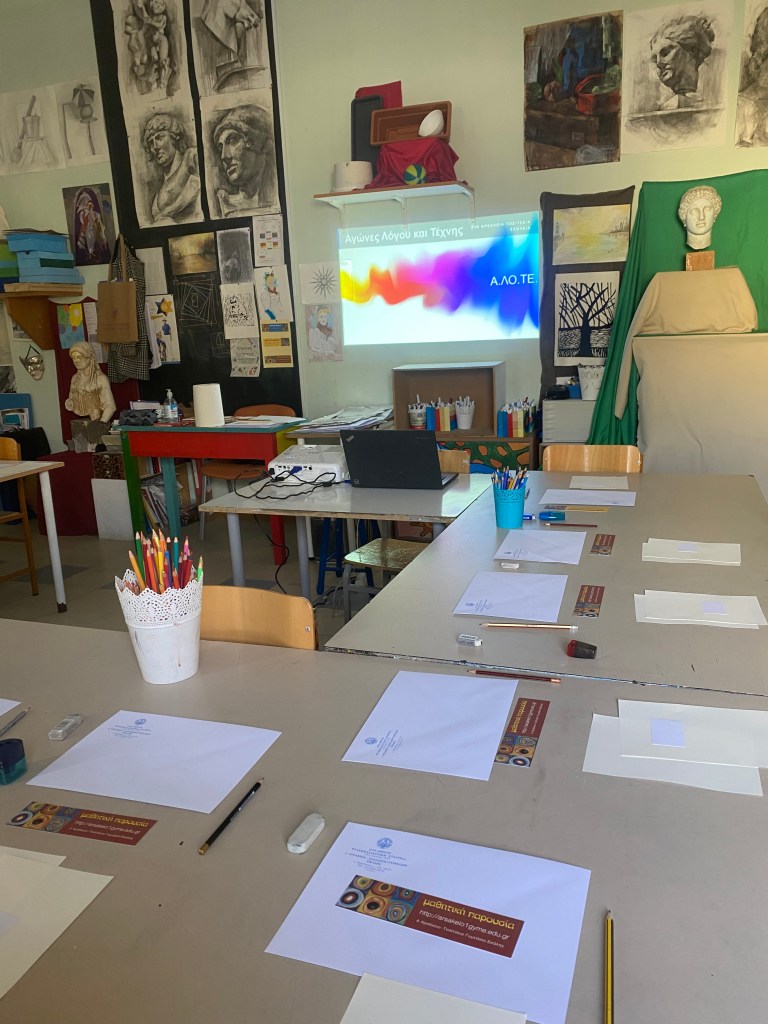 Οι μαθητές της ΣΤ΄ Δημοτικού του Γ΄ Αρσακείου – Τοσιτσείου Δημοτικού συνοδευόμενα από τις κ. Φουντούλη Κατερίνα, Δασκάλα του τμήματος, καθώς και την κ. Παπαρούλια Μαίρη, καθηγήτρια Φυσικής Αγωγής, την Τρίτη 4 Μαρτίου 2025 συμμετείχαν σε ένα εκπαιδευτικό εργαστήριο με θέμα τους Αγώνες Λόγου και Τέχνης. Στο πλαίσιο της δράσης αυτής, είχαν την ευκαιρία να γνωρίσουν τον θεσμό των Αγώνων των Αρσακείων-Τοσιτσείων Σχολείων μέσα από μια ειδικά διαμορφωμένη παρουσίαση, την οποία έχει επιμεληθεί η καθηγήτρια Καλλιτεχνικών του Α’ Αρσακείου-Τοσιτσείου Γυμνασίου Εκάλης κ. Κυριακή Πρεβενιού. Στη συνέχεια, με την καθοδήγηση της καθηγήτριας Καλλιτεχνικών οι μαθητές προχώρησαν σε μια δημιουργική δραστηριότητα πάνω σε ένα παλαιότερο θέμα του Διαγωνισμού. Πιο συγκεκριμένα, οι μαθητές δούλεψαν το θέμα των 11ων Αγώνων που ήταν βασισμένο στο ζωγραφικό έργο του Μάρκ Σαγκάλ με τίτλο: «Πάνω απ΄ την πόλη». Μέσα από την τεχνική του καταιγισμού ιδεών αλλά και εικόνων, κατανόησαν στην πράξη πώς μπορεί να δημιουργηθεί ένα καλλιτεχνικό έργο με κοινό θεματικό άξονα, αξιοποιώντας τη φαντασία και τη δημιουργικότητά τους μέσα από τους δοσμένους περιορισμούς. Βασικός στόχος του εργαστηρίου ήταν αφενός η γνωριμία με δράσεις που λαμβάνουν χώρα στη Δευτεροβάθμια Εκπαίδευση και η εξοικείωση των μαθητών με τους Αγώνες Λόγου και Τέχνης και αφετέρου η δημιουργία ενός προσωπικού έργου, το οποίο κράτησαν οι μαθητές ως ενθύμιο από αυτή την ξεχωριστή εμπειρία.