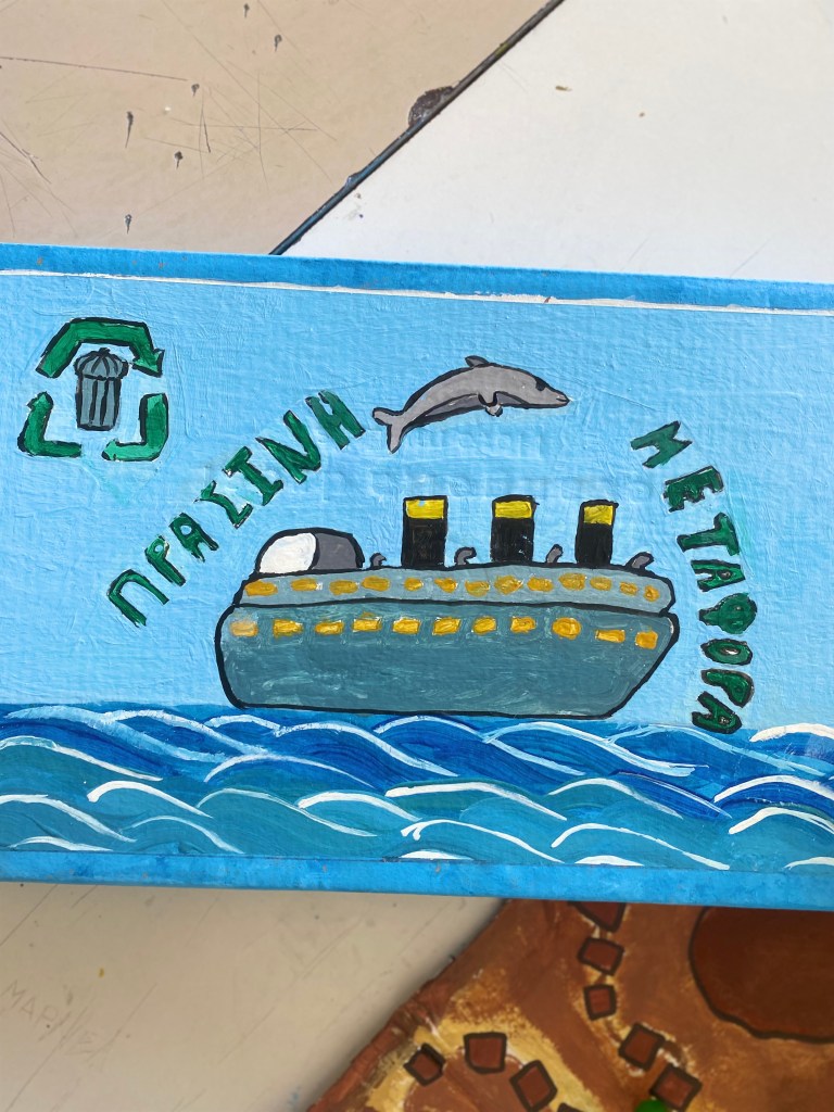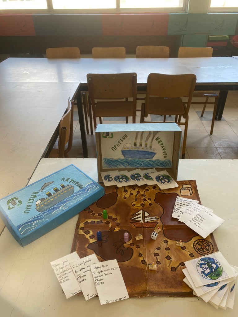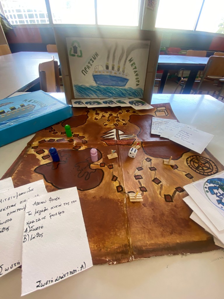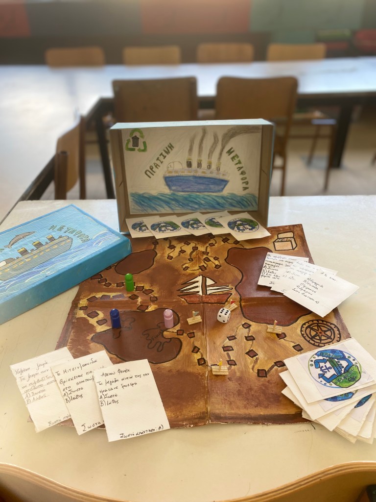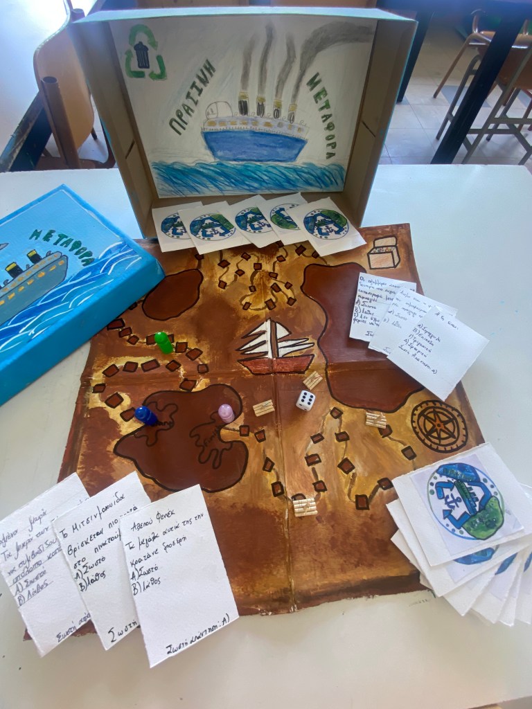 Μετά από ψηφοφορία, επιλέχθηκε προς υλοποίηση η ιδέα που έλαβε τις περισσότερες ψήφους. Τα παιδιά χωρίστηκαν σε ομάδες εργασίας και, με την καθοδήγηση της καθηγήτριάς τους, κατασκεύασαν το παιχνίδι στο Εργαστήριο Καλλιτεχνικών του Σχολείου. Το πρώτο μισό του τμήματος Α1 έφτιαξε το παιχνίδι «Πράσινη Μεταφορά», ένα παιχνίδι για την περιβαλλοντική ευαισθητοποίηση και την περιβαλλοντική μόλυνση των θαλασσών. Πιο συγκεκριμένα πρόκειται για ένα παιχνίδι που έχει ως στόχο να ευαισθητοποιήσει τους παίκτες σχετικά με τις περιβαλλοντικές επιπτώσεις της λανθασμένης μεταφοράς υλικών, όπως το πετρέλαιο στη θάλασσα, μέσω ενός διαδραστικού και εκπαιδευτικού μηχανισμού. Το παιχνίδι παίζεται από δύο ομάδες. Η κάθε ομάδα καλείται να απαντήσει σωστά σε μια σειρά από ερωτήσεις οικολογικού ενδιαφέροντος. Κάθε σωστή απάντηση αντιστοιχεί σε μία αναβάθμιση του πλοίου της ομάδας, καθιστώντας το, πιο ανθεκτικό στις δυσκολίες που θα αντιμετωπίσει. Το παιχνίδι συνεχίζεται με τον αριθμό που θα φέρει το ζάρι το οποίο καθορίζει την πορεία του πλοίου στον χάρτη και τις προκλήσεις που θα αντιμετωπίσει στο ταξίδι του. Νικητήρια ομάδα αναδεικνύεται εκείνη που έχει απαντήσει σωστά στις περισσότερες ερωτήσεις περιβάλλοντος και θα έχει οδηγήσει το καράβι με ασφάλεια στον τερματισμό!