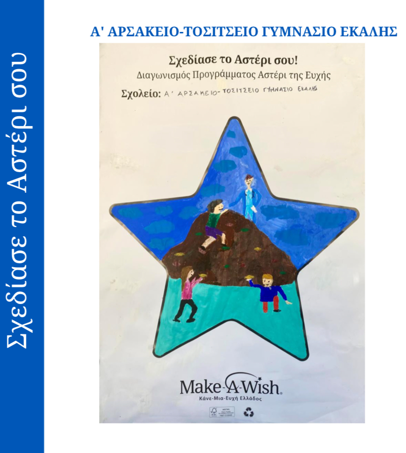 Το τμήμα Β3 του Σχολείου μας συμμετείχε στον δημιουργικό διαγωνισμό «Το Αστέρι της Ευχής» στην κατηγορία Σχεδίασε το αστέρι σου, που διοργανώθηκε από τον μη κερδοσκοπικό οργανισμό Make-A-Wish (Κάνε-Μια-Ευχή) Ελλάδος. Οι μαθητές, με ομαδικό πνεύμα και δημιουργικότητα, παρουσίασαν το έργο με τίτλο «Η δύναμη είμαστε εμείς!», με την καθοδήγηση της καθηγήτριας Καλλιτεχνικών κ. Κυριακής Πρεβενιού.