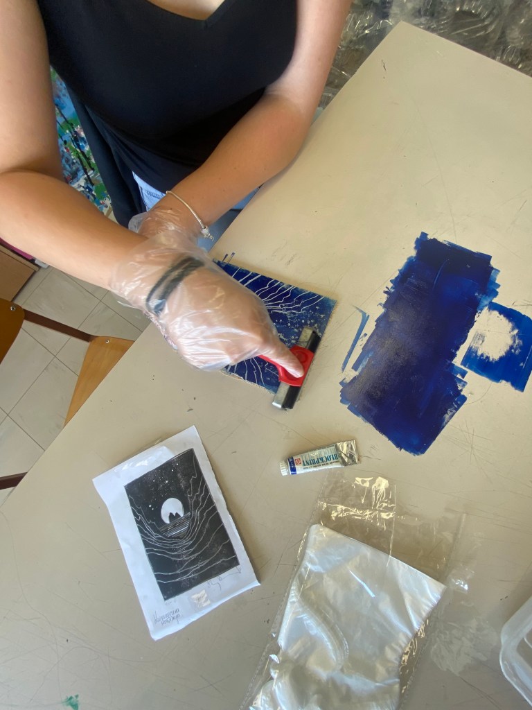 Μια ξεχωριστή καλλιτεχνική εμπειρία είχαν την ευκαιρία να ζήσουν οι μαθητές και οι μαθήτριες του Σχολείου μας του τμήματος της Ζώνη Πολιτισμού «Καλλιτεχνικό Εργαστήρι: Το Σχολείο αλλιώς!», μέσα από ένα βιωματικό εργαστήριο Χαρακτικής με έμφαση στην τεχνική της ξυλογραφίας. Με την καθοδήγηση της καθηγήτριας Καλλιτεχνικών κ. Κυριακής Πρεβενιού, τα παιδιά συμμετείχαν ενεργά σε όλα τα στάδια της δημιουργικής διαδικασίας, από τη σύλληψη της ιδέας, τον σχεδιασμό, τη χάραξη μέχρι την εκτύπωση του τελικού έργου.