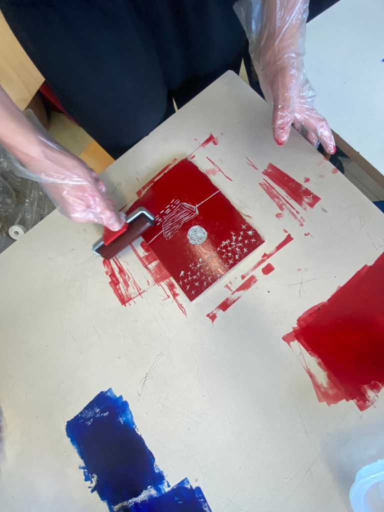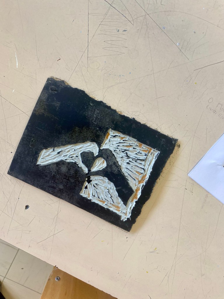 Το εργαστήριο ξεκίνησε με την επιλογή του σχεδίου, ένα βήμα που ενίσχυσε τη φαντασία και την προσωπική έκφραση κάθε μαθητή. Στη συνέχεια, το σχέδιο μεταφέρθηκε με ακρίβεια πάνω σε λινόλεουμ, υλικό κατάλληλο για τη συγκεκριμένη τεχνική καθώς επιτρέπει πιο εύκολα τη χάραξη από τους μαθητές. Ακολούθησε η χάραξη με ειδικά εργαλεία χαρακτικής – ένα στάδιο που απαιτεί συγκέντρωση, προσοχή, δεξιοτεχνία και υπομονή. Τέλος, ήρθε η στιγμή της εκτύπωσης: οι μαθητές εφάρμοσαν μελάνια χαρακτικής και τύπωσαν τα έργα τους σε χαρτί, απολαμβάνοντας τη χαρά της δημιουργίας και του απρόβλεπτου αποτελέσματος της κάθε εκτύπωσης. Πέρα από την καλλιτεχνική διάσταση, το εργαστήριο είχε και σημαντική παιδαγωγική αξία. Μέσα από τη γνωριμία με την τέχνη της Χαρακτικής, τα παιδιά εξοικειώθηκαν με μια παραδοσιακή μορφή έκφρασης, ανέπτυξαν δεξιότητες λεπτών κινήσεων, συνεργάστηκαν, πειραματίστηκαν και ένιωσαν υπερηφάνεια για το αποτέλεσμα της προσπάθειάς τους! Η εμπειρία αυτή αποτέλεσε έναν δημιουργικό διάλογο ανάμεσα στο παρελθόν και το παρόν της τέχνης, φέρνοντας τους μαθητές πιο κοντά στην πολιτιστική μας κληρονομιά.