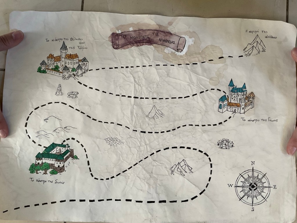 Ο χάρτης της πορείας του ιππότη: Μαθήτρια σχεδίασε έναν ενδεικτικό χάρτη της πορείας που ακολούθησε ο ιππότης από το βασίλειό του μέχρι τα τρία κάστρα που του υπέδειξε ο μάγος.