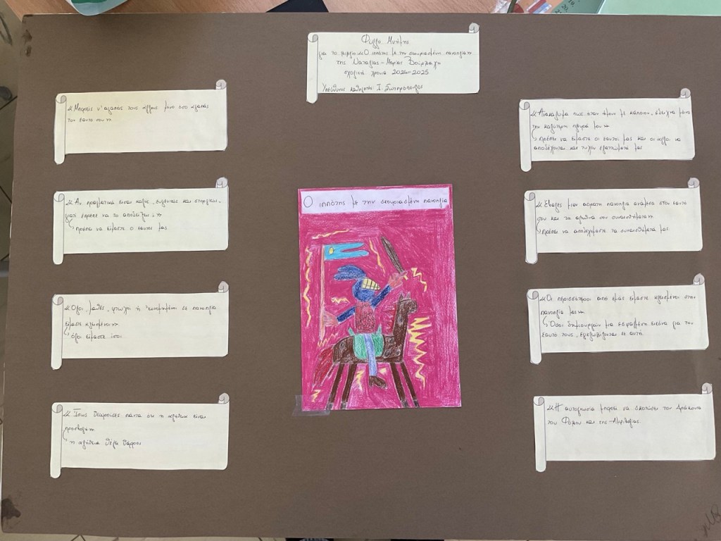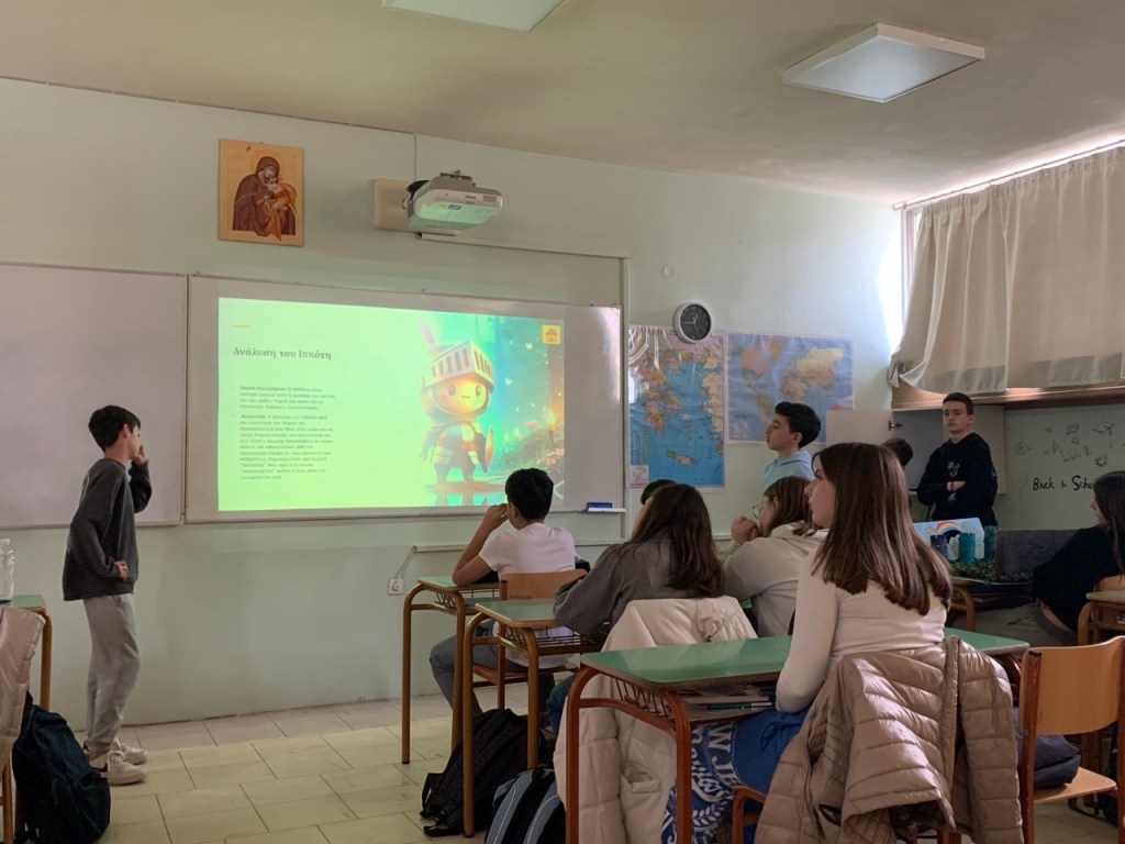 Η προσέγγιση ήταν βιωματική και διαλογική. Μέσα από ερωτήσεις, παιχνίδια ρόλων και προσωπικές καταγραφές, τα παιδιά κλήθηκαν να «συναντήσουν» τον ιππότη μέσα τους και να αναγνωρίσουν τη δική τους πορεία. Αφού ολοκληρώσαμε την ανάγνωση και την ερμηνεία του κειμένου, δόθηκαν στους μαθητές συγκεκριμένες οδηγίες για την υλοποίηση δημιουργικών δράσεων: