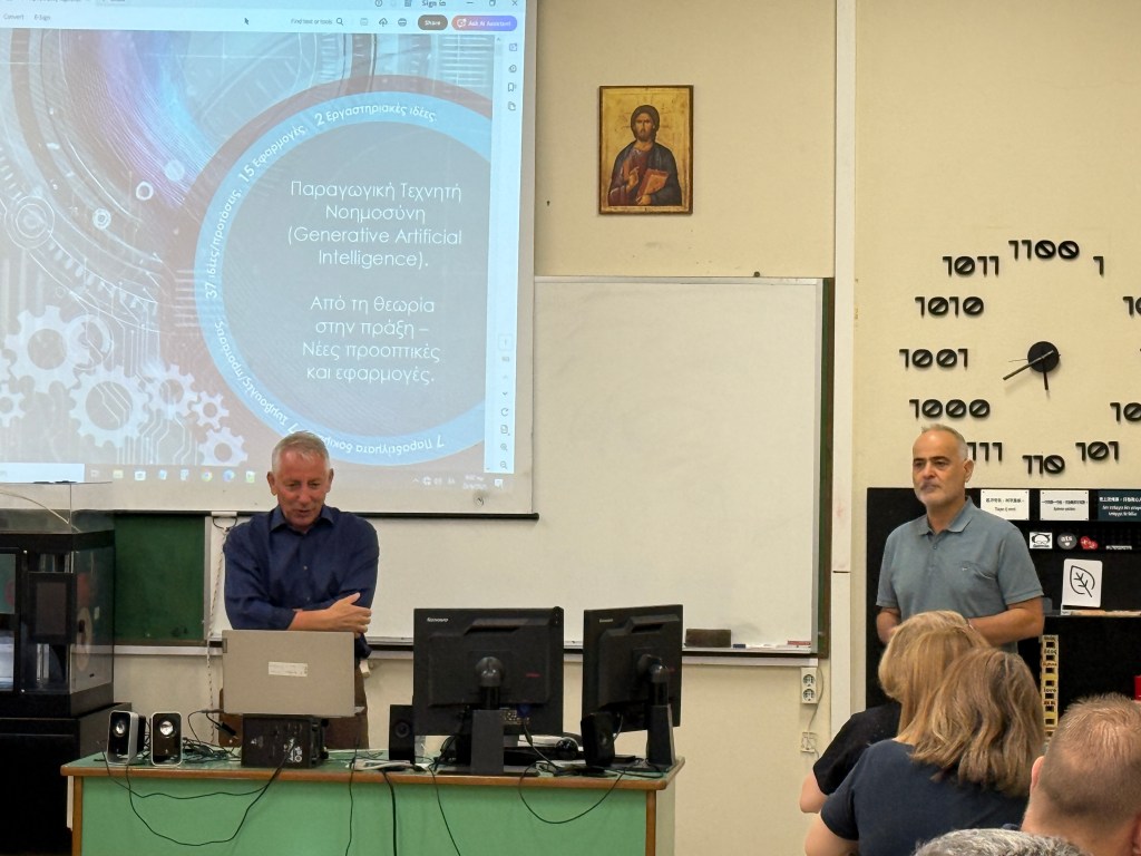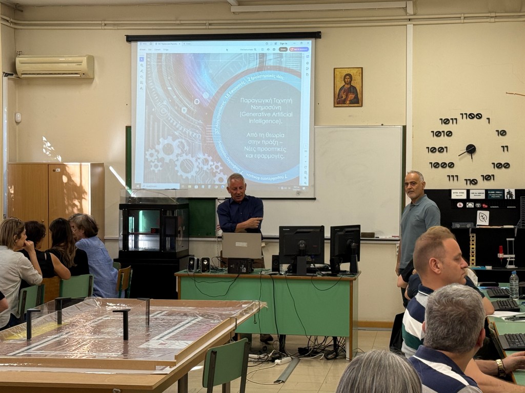Τη Δευτέρα 23 και την Τρίτη 24 Ιουνίου 2025, οι εκπαιδευτικοί των Αρσακείων-Τοσιτσείων Γυμνασίων και Λυκείων Εκάλης, με πρωτοβουλία των Διευθυντών των Σχολείων, είχαν την ευκαιρία να παρακολουθήσουν ένα επιμορφωτικό σεμινάριο αφιερωμένο στην τεχνητή νοημοσύνη ΤΝ, το οποίο συντόνισε ο κ. Βασίλειος Οικονόμου, σύμβουλος για θέματα Πληροφορικής στο Ελληνικό Ίδρυμα Πολιτισμού.