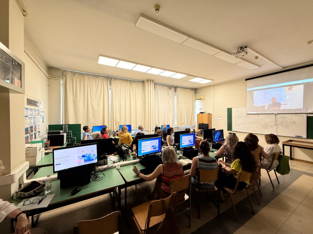 Συνολικά 105 εκπαιδευτικοί από τα Αρσάκεια Σχολεία της Εκάλης συμμετείχαν, ανά ειδικότητα, σε εργαστήρια που τους έδωσαν τη δυνατότητα να γνωρίσουν και να πειραματιστούν με σύγχρονα εργαλεία τεχνητής νοημοσύνης. Κατά τη διάρκεια του σεμιναρίου, δημιούργησαν εκπαιδευτικό υλικό (οπτικοποίηση ιστοριών που παρήχθησαν μέσω ΤΝ, μελοποίηση ποιημάτων, κατασκευή εννοιολογικών χαρτών και χρονογραμμών, δημιουργία πρωτότυπων ασκήσεων Μαθηματικών, Φυσικής και Χημείας), ανακαλύπτοντας δημιουργικούς τρόπους ενσωμάτωσης της ΤΝ στη διδακτική πράξη.