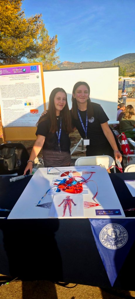 Την Παρασκευή 26 Σεπτεμβρίου 2025 οι μαθήτριες τη Γ’ Γυμνασίου του Α’ Αρσακείου-Τοσιτσείου Γυμνασίου Εκάλης Μαριάννα Ανδρεάδη και Μάρθα Θεολόγου συμμετείχαν στη «Βραδιά του Ερευνητή», μια σπουδαία γιορτή επιστήμης και καινοτομίας που φέρνει κοντά ερευνητές, μαθητές και την τοπική κοινωνία. Οι μαθήτριές μας παρουσίασαν με ιδιαίτερη επιτυχία τη δική τους κατασκευή, η οποία αφορούσε την κυκλοφορία του αίματος. Μέσα από τη δημιουργία τους ανέδειξαν, με τρόπο παραστατικό και κατανοητό, πώς λειτουργεί ένα από τα σημαντικότερα συστήματα του ανθρώπινου οργανισμού. Η παρουσίαση κέρδισε το ενδιαφέρον και τον θαυμασμό των επισκεπτών, αποδεικνύοντας ότι η μάθηση γίνεται πιο ουσιαστική όταν συνδυάζει τη θεωρία με τη δημιουργικότητα και την πράξη. Η εμπειρία αυτή αποτέλεσε ένα ταξίδι έμπνευσης και δημιουργικότητας, που ενίσχυσε τον δεσμό του σχολείου μας με την ακαδημαϊκή κοινότητα και άνοιξε νέους ορίζοντες στους μαθητές μας. Συγχαρητήρια στις μαθήτριές μας τις μαθήτριές μας, που με τη δημιουργικότητα και την παρουσία τους ξεχώρισαν στη διοργάνωση!