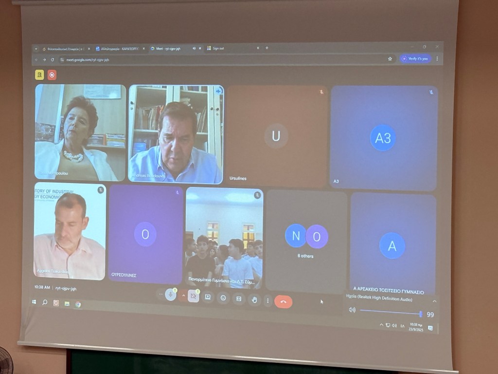 Την Τρίτη 23 Σεπτεμβρίου 2025, οι μαθητές της Γ΄ τάξης του Α΄ Αρσακείου-Τοσιτσείου Γυμνασίου Εκάλης είχαν την ευκαιρία να συμμετάσχουν στη διαδικτυακή δράση Chat Lab της Βραδιάς του Ερευνητή, με τίτλο «Καινοτομία και Ανάπτυξη», που έλαβε χώρα στο Αμφιθέατρο του σχολείου. Πρόκειται για μια από τις πλέον επιτυχημένες δράσεις του θεσμού, που συνεχίζεται με ιδιαίτερη ανταπόκριση, δίνοντας την ευκαιρία σε μαθητές, εκπαιδευτικούς και πολίτες να συμμετάσχουν ενεργά σε έναν γόνιμο διάλογο με την ερευνητική κοινότητα. Η εκδήλωση, που διοργανώθηκε από τη Σχολή Χημικών Μηχανικών του Εθνικού Μετσόβιου Πολυτεχνείου, πρόσφερε τη δυνατότητα στους μαθητές μας να συνομιλήσουν με διακεκριμένους καθηγητές και ερευνητές, όπως οι Α. Μοροπούλου, Α. Μπουντουβής και Αγγ. Τσακανίκας. Οι ομιλητές ανέδειξαν την κρίσιμη σημασία της καινοτομίας για την ανάπτυξη της χώρας, τονίζοντας πως μπορεί όχι μόνο να βελτιώσει την καθημερινότητά μας αλλά και να οδηγήσει σε υψηλότερο βιοτικό επίπεδο και να δημιουργήσει νέες θέσεις εργασίας. Ιδιαίτερη έμφαση δόθηκε στην αειφόρο ανάπτυξη και την κυκλική οικονομία, που συνδυάζουν οικονομική πρόοδο με σεβασμό στο περιβάλλον με αναφορά σε συγκεκριμένα προγράμματα του ΕΜΠ, που αποσκοπούν στην ενίσχυση των τοπικών οικονομιών και την αξιοποίηση των φυσικών πόρων. Οι μαθητές μας, μέσα από έναν γόνιμο διάλογο, κατανόησαν τη σημασία της ενεργού συμμετοχής, της διαρκούς μάθησης και της καινοτομίας στην αντιμετώπιση των παγκόσμιων προκλήσεων, συνειδητοποιώντας παράλληλα τις δυσκολίες και την επίπονη προσπάθεια που απαιτούν τέτοιου είδους προσπάθειες. Ήταν μια εξαιρετικά διδακτική εμπειρία που ανέδειξε το ρόλο της επιστήμης στην οικοδόμηση ενός καλύτερου μέλλοντος.