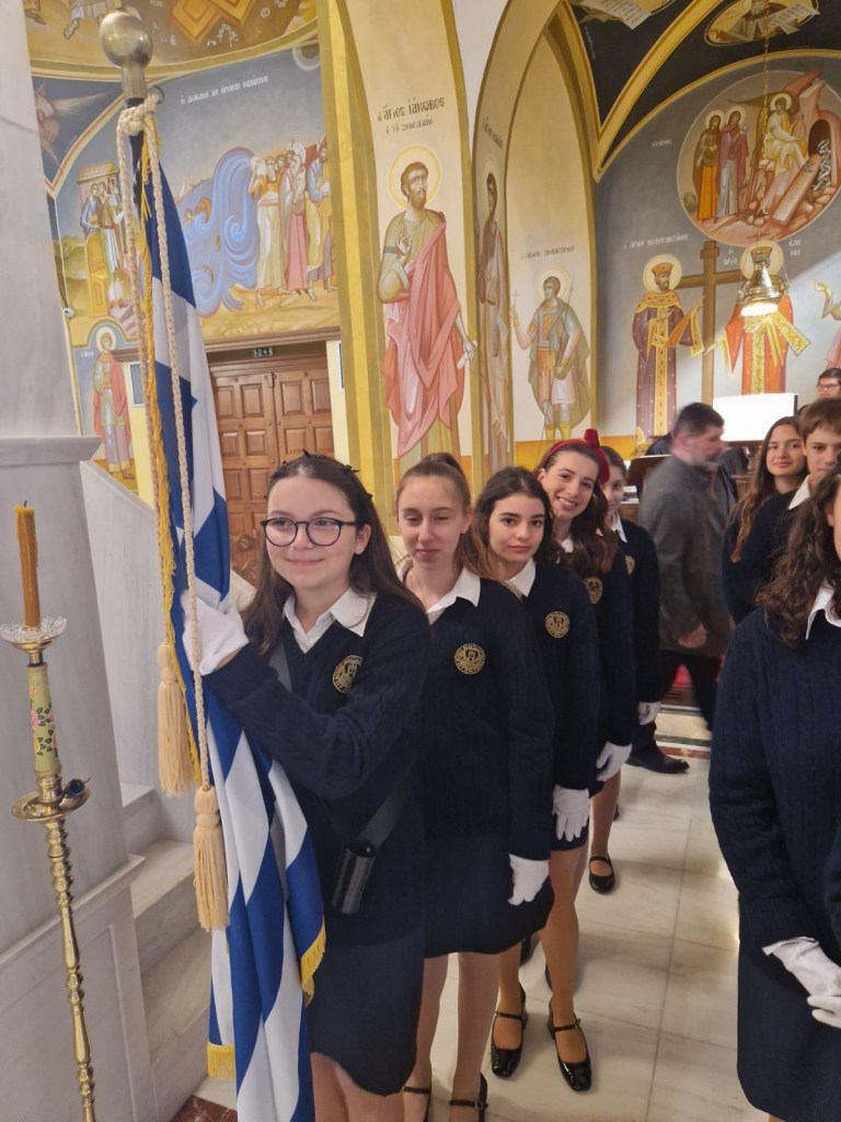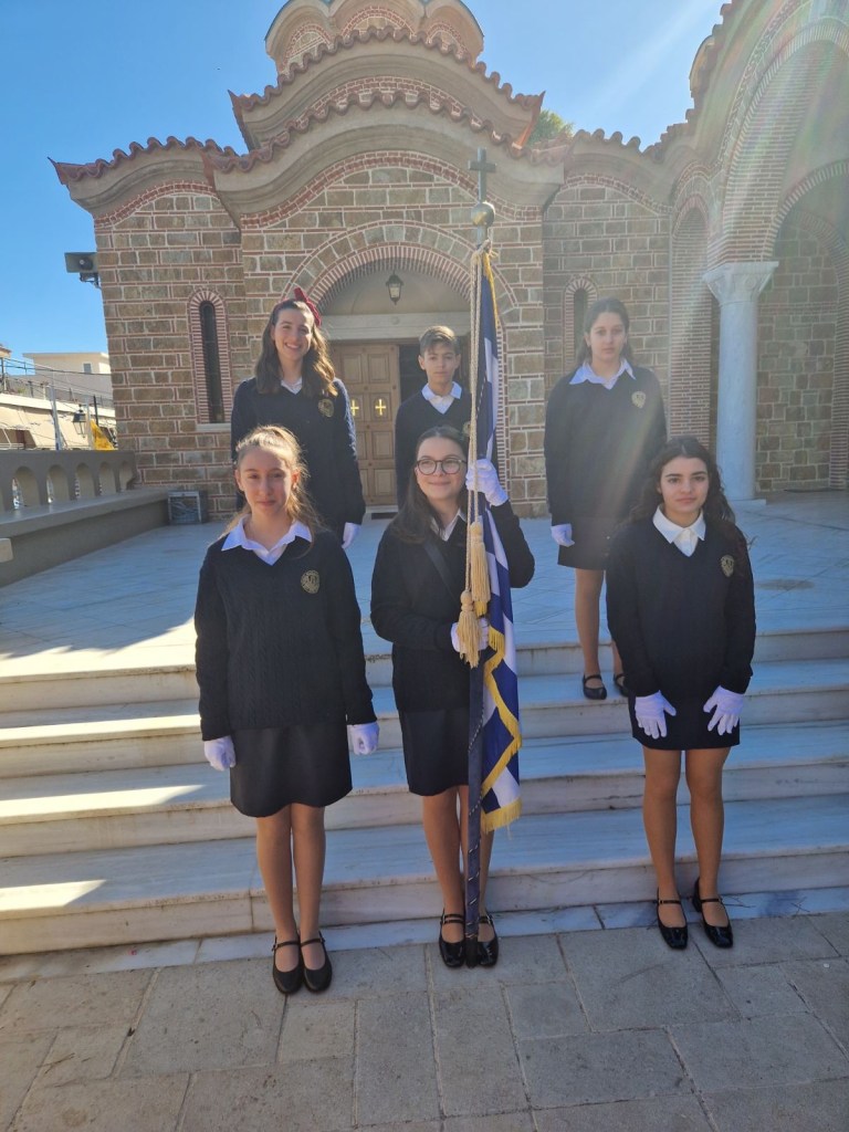 Την Τρίτη 28 Οκτωβρίου 2025 το Α’ Αρσάκειο-Τοσίτσειο Γυμνάσιο Εκάλης συμμετείχε στις εορταστικές εκδηλώσεις που διοργάνωσε ο Δήμος Διονύσου τιμώντας την εθνική επέτειο της 28ης Οκτωβρίου 1940. Συγκεκριμένα η Σημαιοφόρος και οι Παραστάτες μας παρευρέθησαν στη Δοξολογία στον Ιερό Ναό Κοιμήσεως Θεοτόκου και Αγίου Στεφάνου. Στη συνέχεια, παρακολούθησαν την επιμνημόσυνη Δέηση, την εκφώνηση του πανηγυρικού της ημέρας και κατέθεσαν στεφάνι στο Ηρώο. Τέλος, οι μαθητές παρέλασαν στην κεντρική οδό του Αγίου Στεφάνου και καταχειροκροτήθηκαν από όλους όσοι παρευρέθηκαν στον χώρο της παρέλασης. Το Σχολείο μας εκπροσώπησε στις εκδηλώσεις η Υποδιευθύντρια κ. Μαρία Καραγεωργίου, μαθηματικός, και ο Καθηγητής Φυσικής Αγωγής κ. Λάμπρος Παπαναστασίου. Τους μαθητές προετοίμασαν και συνόδευσαν οι καθηγητές Φυσικής Αγωγής κ. Ηρώ Πάζα και κ. Λάμπρος Παπαναστασίου.